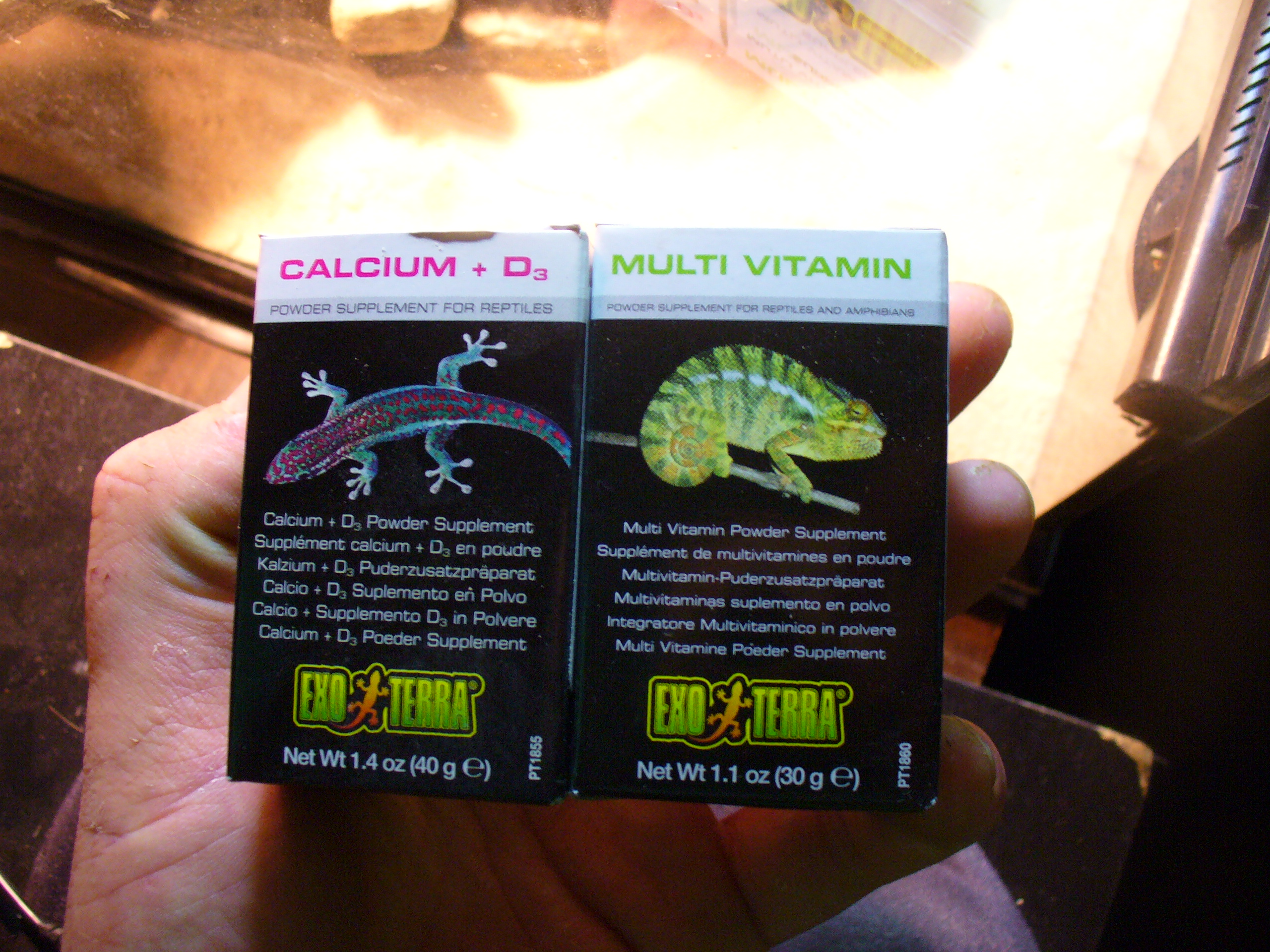 Při dostatečném podávání vápníku a zdroji UVB v teráriu, si tělo vytvoří dostatek vitamínu D3 přirozenou cestou. S tím multivitamínem nevím, nezkoušel jsem. U stepáka používáme se synem roboran smíchaný s plastinem, je to za pár korun a složení je vyhovující. Bohužel jsme ochuzeni o obrázek ještěra na obalu, ale zase tam máme králíky a slepice...:-)
