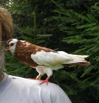 Můj poslední "dokrmenej" Pipík , Rakovnický kotrlák (za letu dělají salta nazad) - červený sedlatý