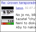 Co se týče technických vylepšeních - ok, proč ne, pokud by to mělo pomoct.. To ale modi ovlivní max. tak, že by tyto názory ventilovali jinde.. edit: Luboši - ona jedna věc je si své lidi chránit a druhá věc přehlížet věci, které se jinde trestají. Tak vzniká elitářství a tady se nám koření taky slušně - sleduji to nějaký čas..