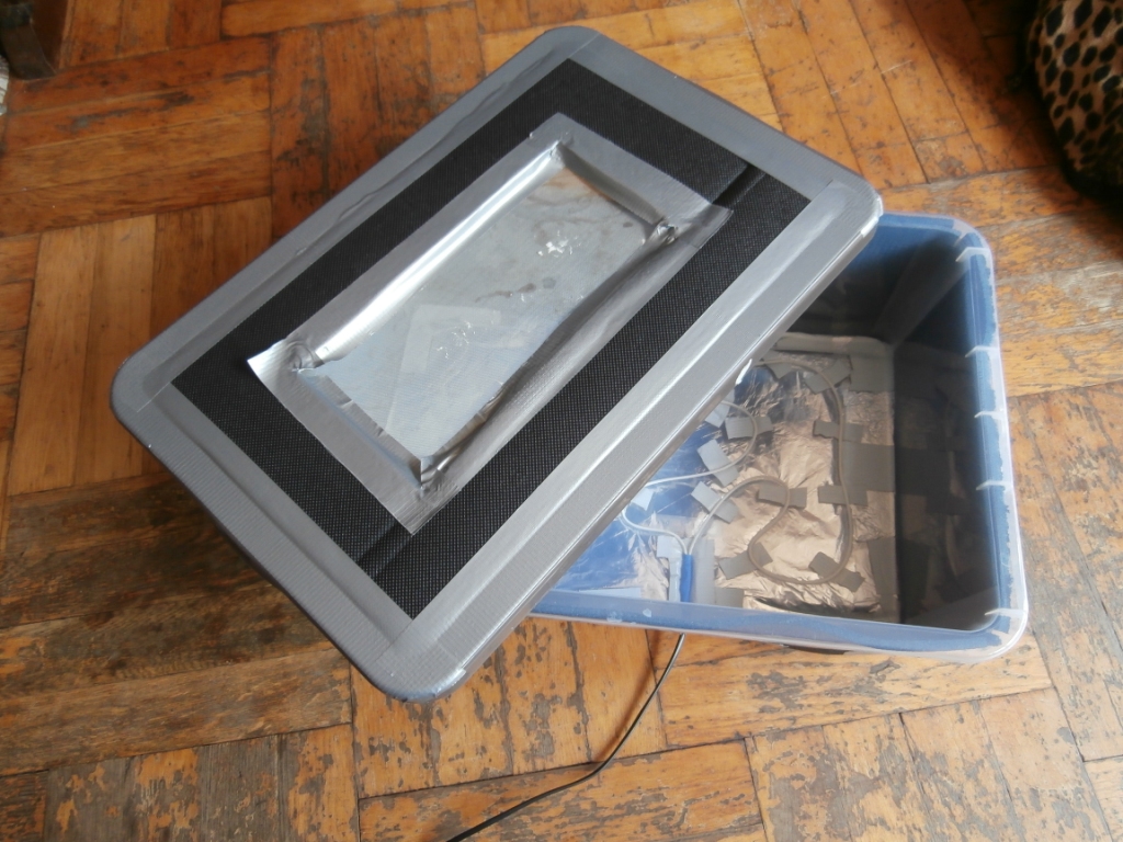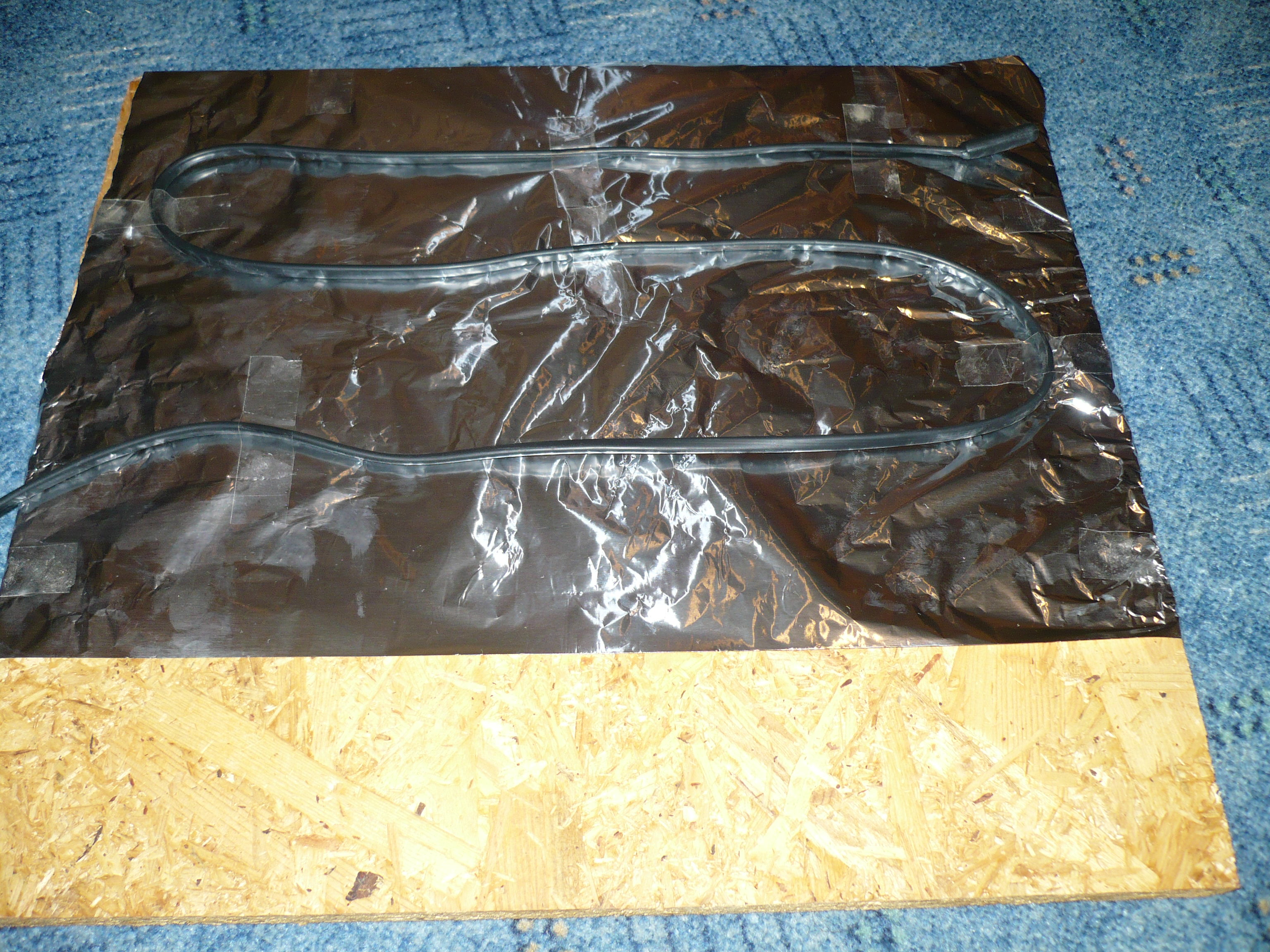 No jelikož vím že já jsem hlava děravá tak sem rychle nafotil první pokus co jsem dělal (úspěšný, ale nyní co je polystyrén mezi deskou a alobalem tak je tam méně tepelných ztrát)