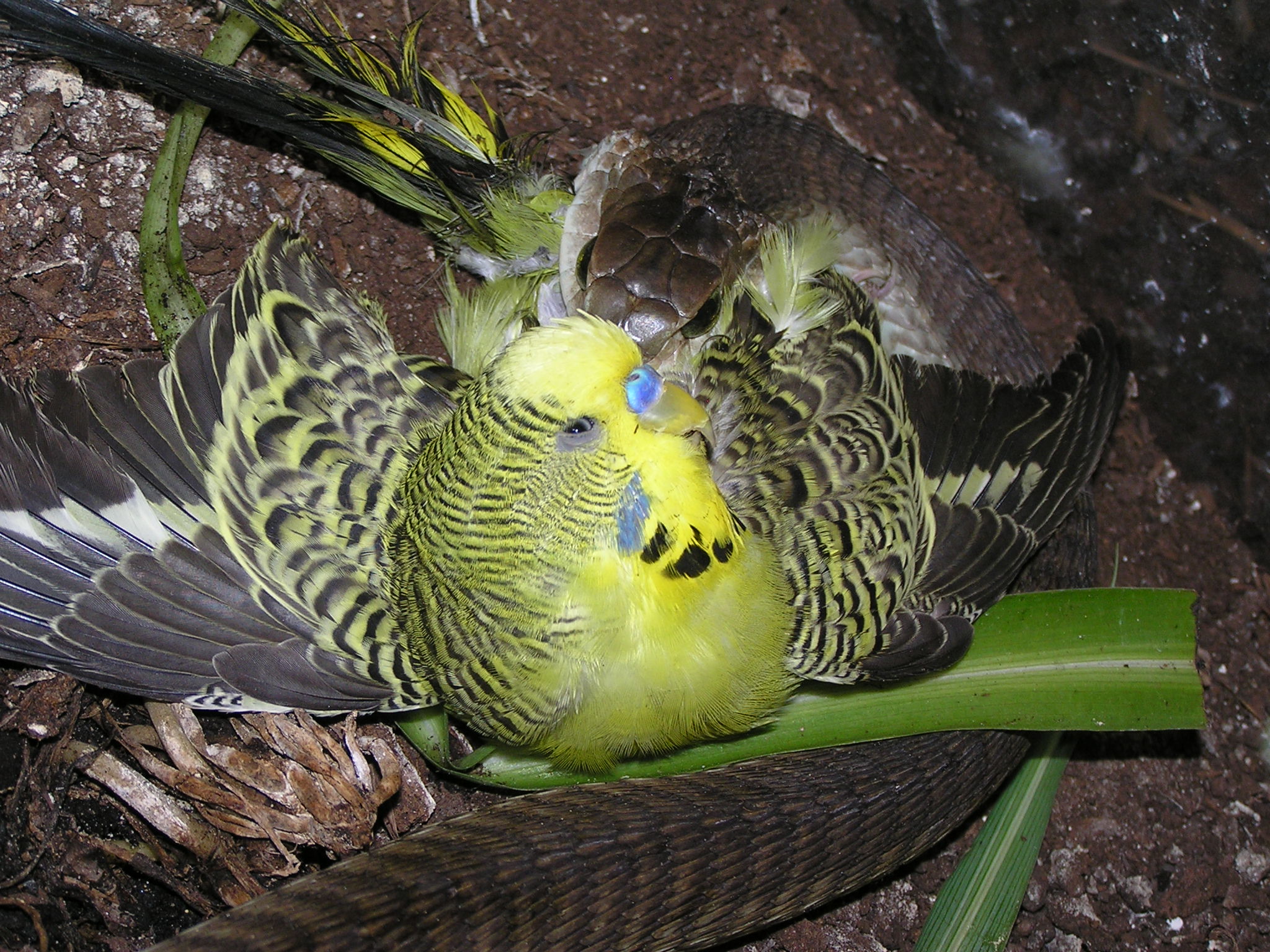 Přikládám foto boomslang vs. andulka vlnkovaná :-)