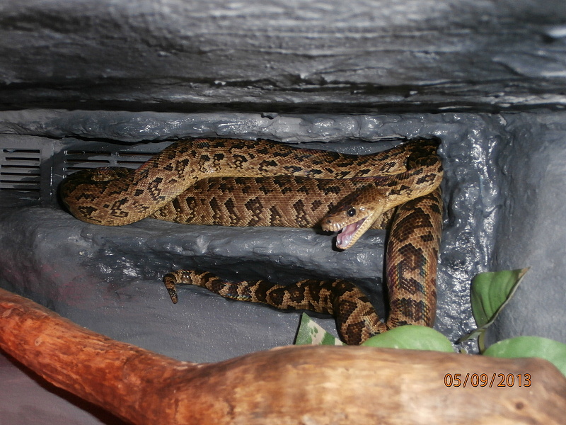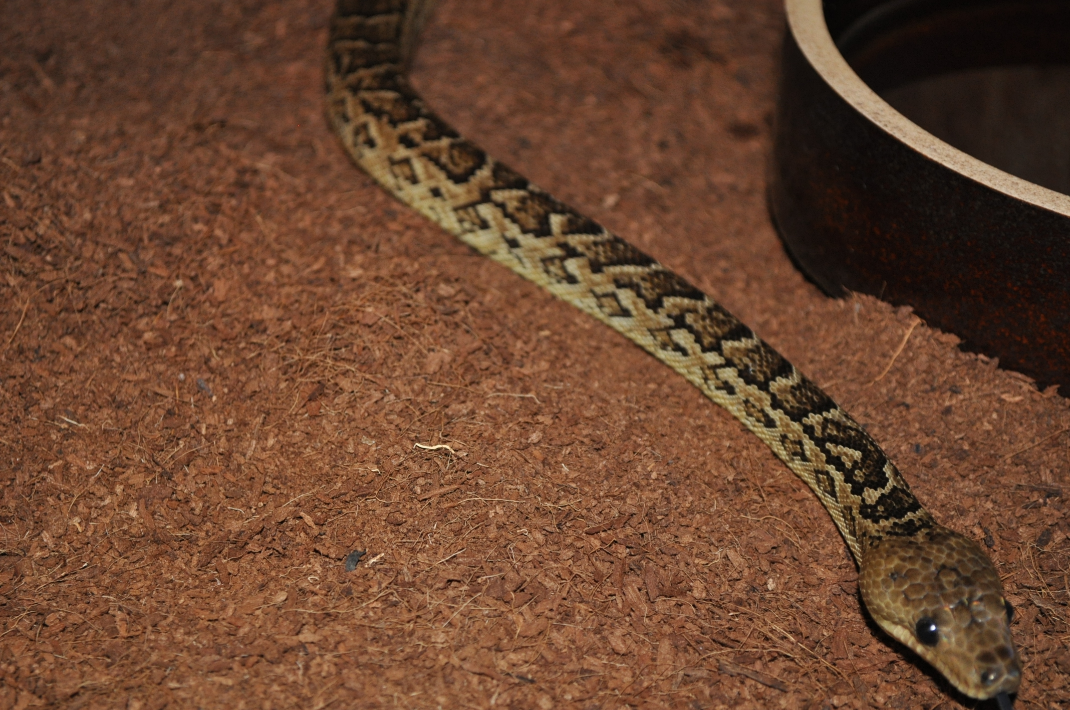 Dobrý den, přikládám foto E. angulifer. Jinak mám dotaz, nedávno jsem měl jednoho z mého (údajného) páru těchto hadů vytaženého ven z terária a stala se mi zvláštní věc, hada jsem nechal dle jeho vůle vylézt na ruce, kde se uchytil, nicméně po chvíli se čumákem dotkl mého předloktí a pomalu jako při polykání kořisti začal otvírat tlamku. V tu chvíli jsem mírným pohybem ruku odtáhl. Chci se zeptat, jestli jste se někdo s tímto chováním někdy setkal? Vše proběhlo v naprostém klidu, had nebyl ve stresu, ani neútočil, pouze jako by mne chtěl "ochutnat" víc než jen jazykem. Omlouvám se za tak trochu OT a předem děkuji za reakce.