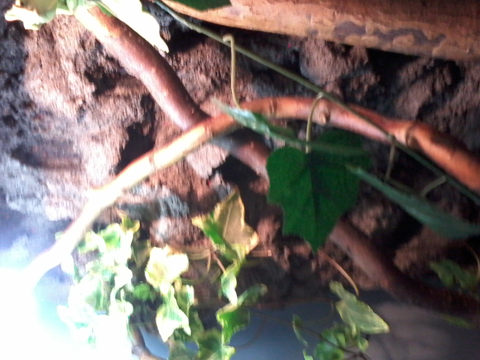To terárko je celé komplet špatně zařízené, pro chamíka nevhodné. POd lampou by měla mít aspoň 35°C, klidně i 40°C. Takhle nemá možnost se vyhřát a efektivně trávit. Ros jenom 1x denně navečer. Dál to tera má absolutně nedostatečné větrání, strop by měl být celý z pletiva, tak to urychleně naprav.. prostě uřízni celý vršek a vsaď tam muší pletivo. A ten podklad je odkud? Mě to z fotek přijde jak takové ty dekorační chemicky nabarvené štěpky- pokud ano, tak ty rozhodně vyhodit a na dno dát směs rašeliny s pískem. Jinak jak už psala Lilek, odnést čerstvý trus na rozbor na mikroorganismy. A taky jí tam dej dostatek tenkých větví, ať má po čem lézt. Ty tlusté klacky vyhoď, nejsou jí k ničemu.
