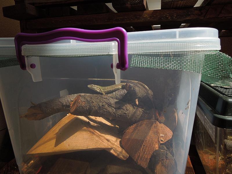 Velké Samla boxy jsou naprosto geniální ubikace na kdeco, zdaleka nejenom na krmný hmyz a odchovy. krom různých druhů Lacertidů v nich chovám i agamy rodu Leiolepis, Ameivy, menší druhy Ctenosaur, některé Anguidy, Laudakie, mláďata Uromastyxů atd. A zvířata se v nich i bez problémů rozmnožují. Naopak pro řadu druhů jsou vhodnější a praktičtější, než skleněné ubikace. Co se týče zadních a bočních stěn, tak ty je lepší upravit tak, že na ně kvůli pružnosti plastu pozadí přímo nenalepíš, ale uděláš ho vyndávací a připevníš ke stěně třeba pomocí čepů. tak, že do stěn Samly propálíš otvor a tím prostrčíš čep, na který desku přichytíš. A nebo necháš stěny holé a jenom tam opřeš třeba korkovou kůru, taky to jde.