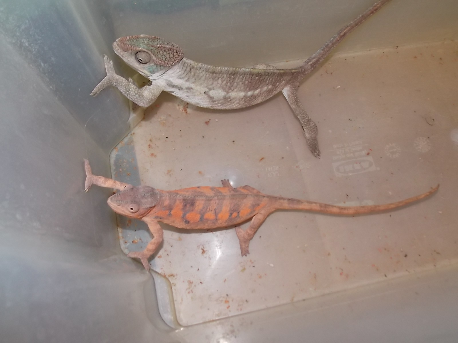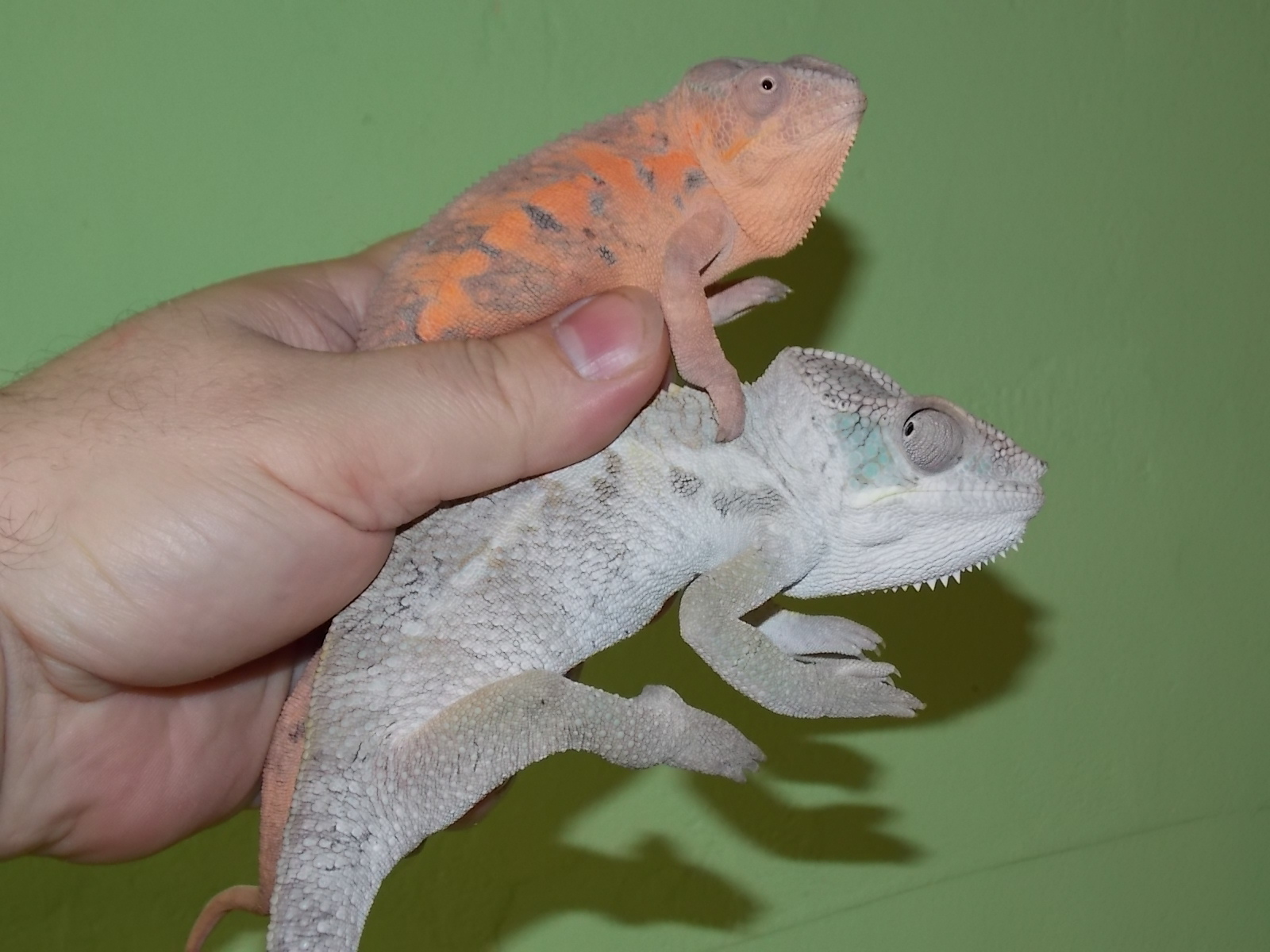 Stáří chamíka je asi 10 měsíců,světlama to nebude,dalších 9 samců co mám,tak jsou nádhěrně barevní a hlavně tento nemá hemipenisy.Když ho dám k jinému samci na páření,tak zastrašuje a prchá,mám ho společně v terárku s tou samicí na fotce,ale ta ho když byla napářená od jiného samce nezastrašovala.