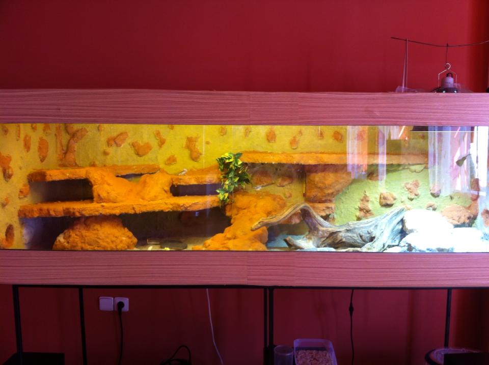 Ahoj sam mam terarium 250x75x70 komplet s 3D pozadim. Zatim tam mam 3 male agamky ale libi se jim urcite. Ale ted k tomu osvetleni ze zkusenosti: UVB- Solar Raptor aspon 70W krasne to doplnuje Lampa Glow Light Halogen a samozrejme tu Solarku s predradnikem, Vyhrevko jsem pouzil Hi-Spot63 50W Spot Sylvania, namirenou smerem pod zdroj UVB a na strop staci 1,2m kuchynske svitidlo s krytem plastovym a s teplotou svetla 6-7000K... mam teploty v terariu 28°C prumer a pod lampou 43°C pokud bys chtel nejake rady atd ohledne stavby nebo i toho svetla dal, napis na e-mail: bartosrudolf@seznam.cz. Zatim hodne stesti preji