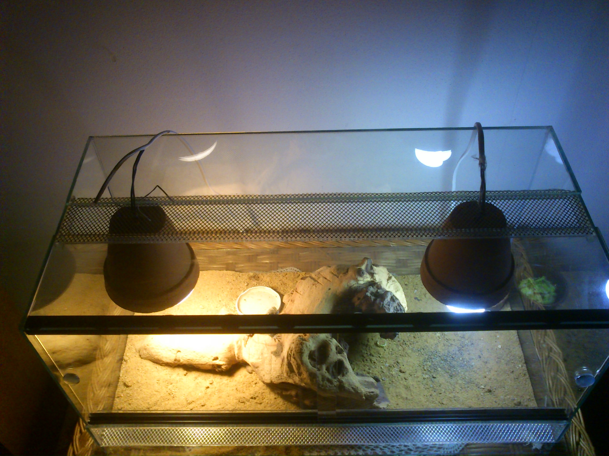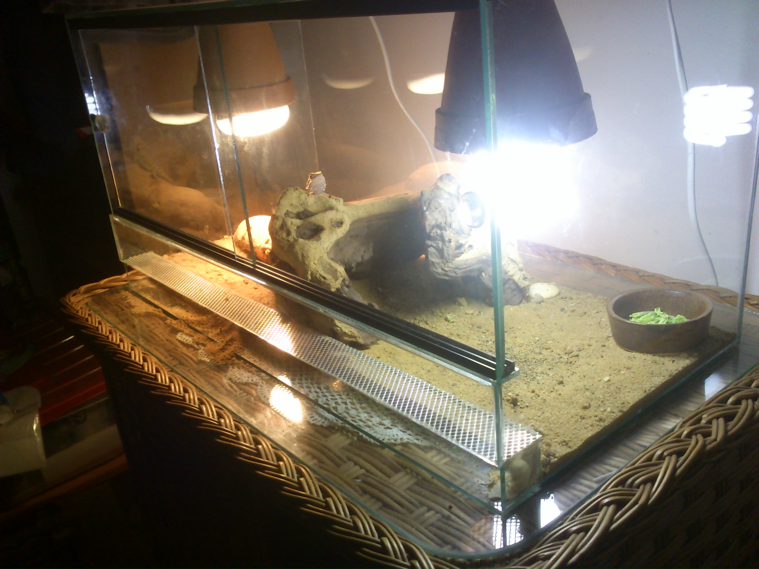 No, já moc nevěřím, že 50W žárovkou v takovém terárku uděláte gradient od 43 pod zdrojem až po 23°C v rohu... Takže podle mě agamu buď lehce připékáte nebo pak naopak mrzne.