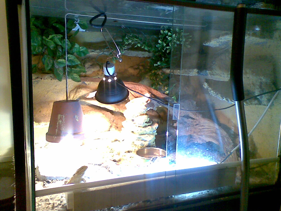 Lampu dejte do terárka tak, aby byla v jednom konci a aby byla od povrchu cca 25 cm. Pod ní by mělo být cca 40°C. Pokud by po umístění lampy do terárka bylo pod lampou málo teplo, nebo v terárku byla příliš velká zima, kupte v nějakém OBI, BAUHAUSU obyčejnou bodovou žárovku, stačí tak 40W a dejte jí někam na další místo v teráriu, nejlépe do stejné poloviny jako výbojku jako doplňkové výhřevné místo.