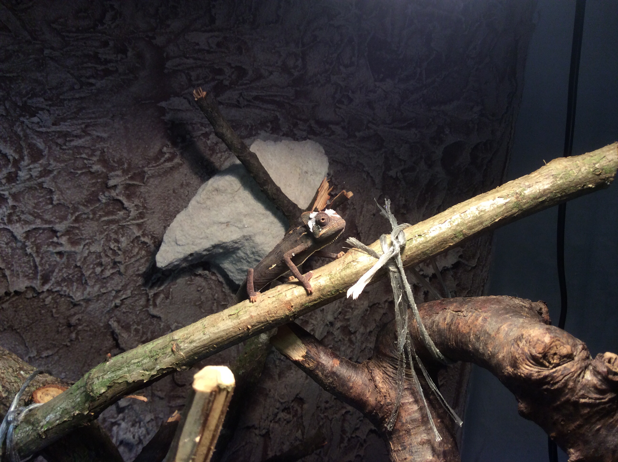 dej mu urychleně napít a ubikaci vybav tenkýma větvema, to zvířátko vypadá dost bídně.. A taky si důkladně přečti tento odkaz chameleon-jemensky