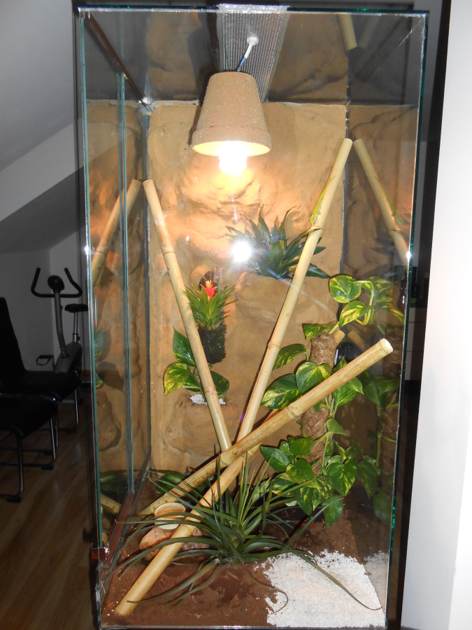 Snaží se lézt po bambusech, ale padá, ze stěny klouže. Vitamíny máme komplexní pro ještěry z teraburzy a dáváme pořád stejné a celou dobu byl zatím ok. UVB nepoužívám.
