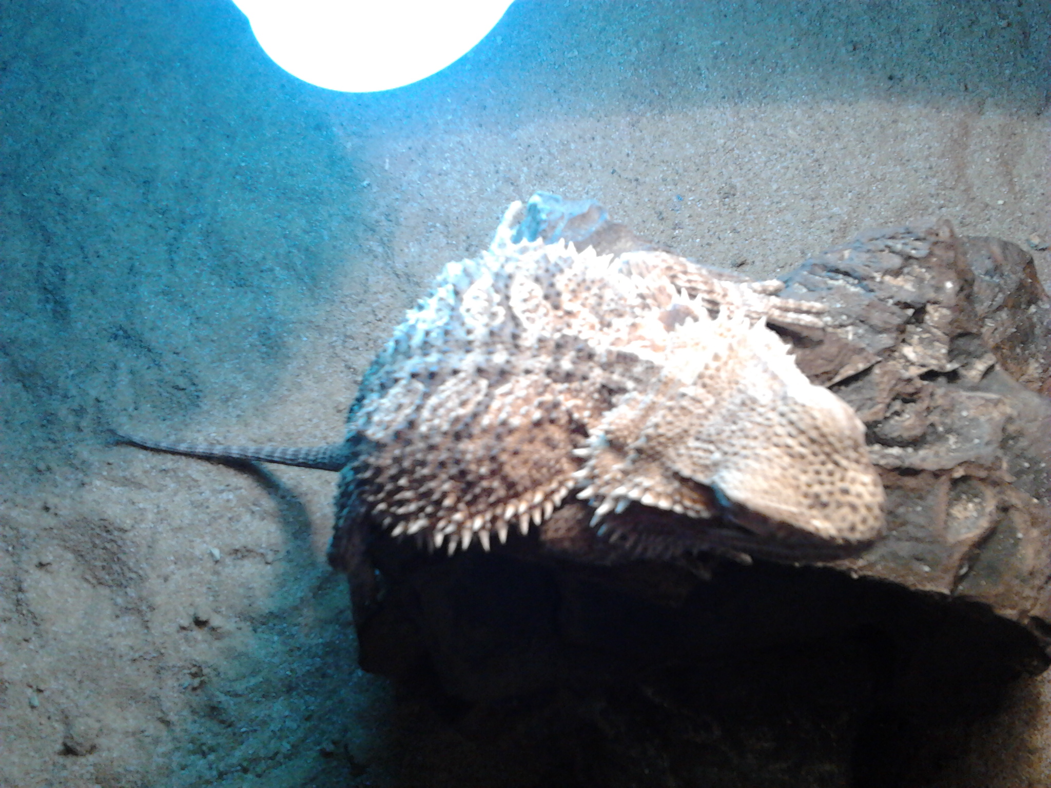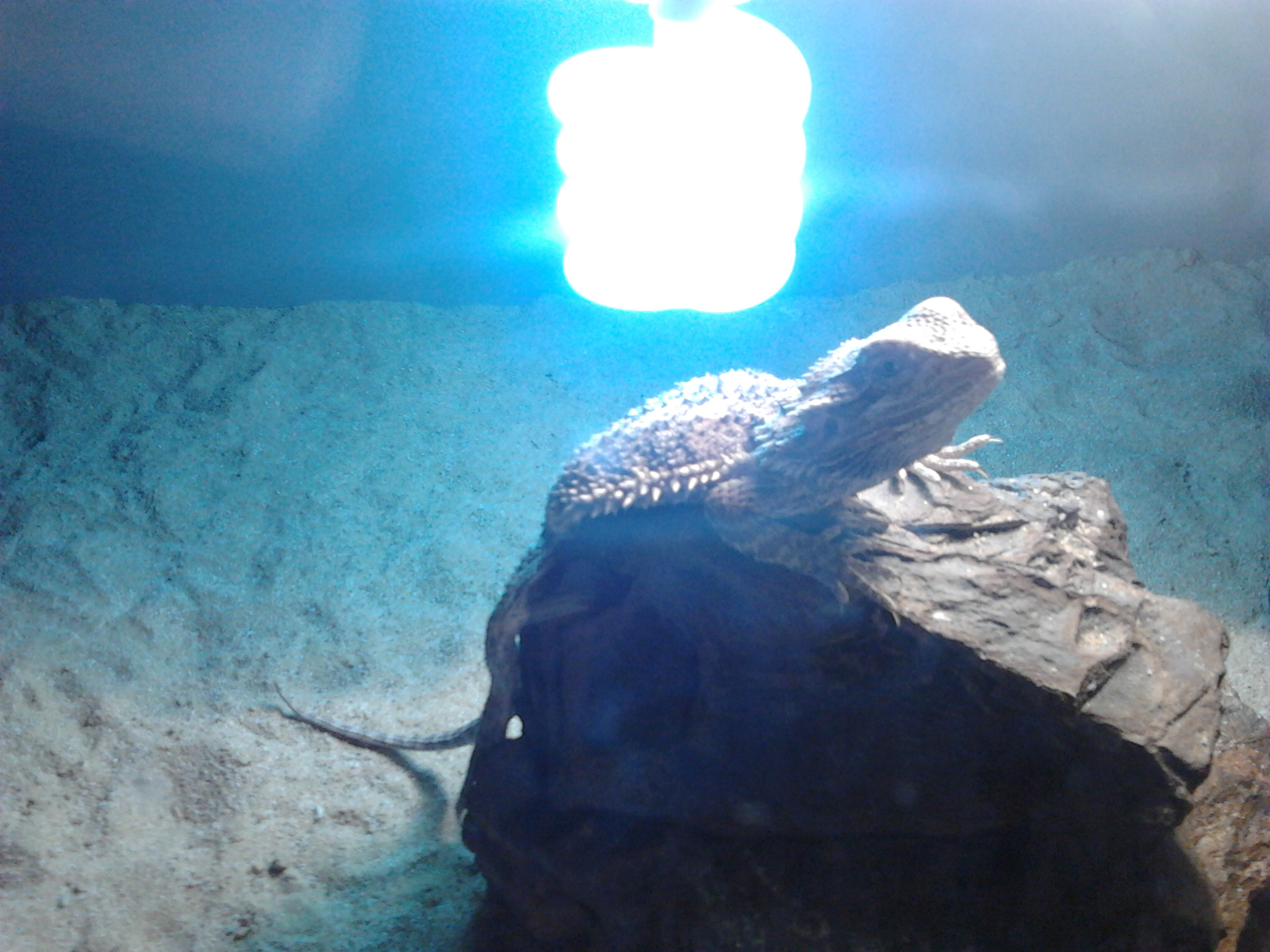 Osvětlení: Repti Glo 10.0 26w (ze vzdálenosti menší než 10cm) + 60 wattů výhřevná žárovka. Svítíme 8:00 - 20:00
