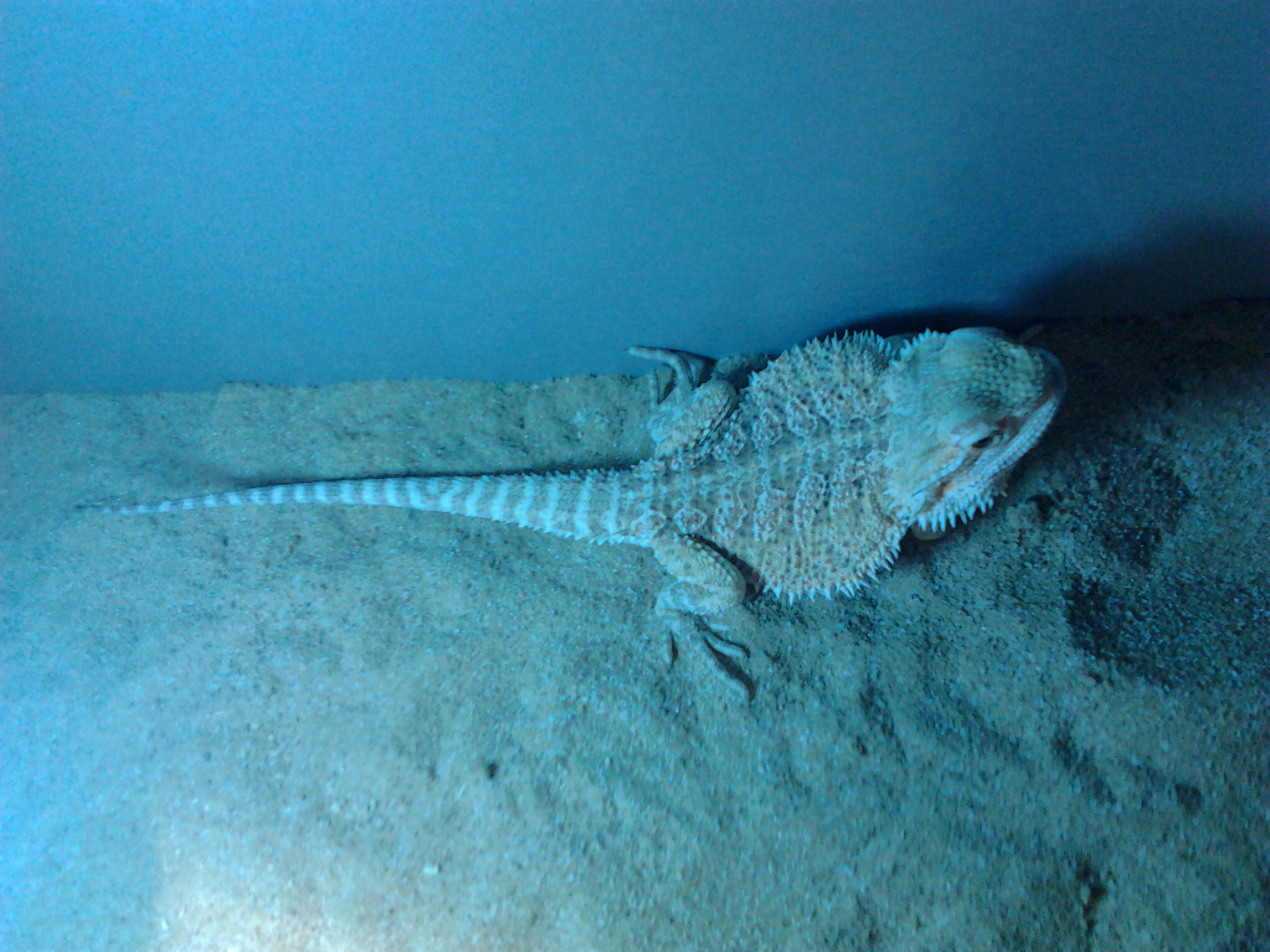 že... po nastěhování mé agamy do nového terárka o rozměrech 125x45x45 začala hodně tmavnout a to po celém těle, hlavě, krku i na břiše se objevují tmavé fleky. Ale když jí vytáhnu z tera, tak trochu zesvětlá... K ranním hodinám se vyhřívá, ale kolem 17:00 vždy zalézá do rohu a pospává. Posledně snědla 3 cvrčky, ale zelené vůbec nepříjímá a ani nepije. Jen když jí dám na čumák... Občas přivírá i oči při vyhřívání se. Navíc pohubla a také se mi zdá docela malá... Délka 28 cm a 66 gramů... K tomu všemu má bledé zadní nohy.