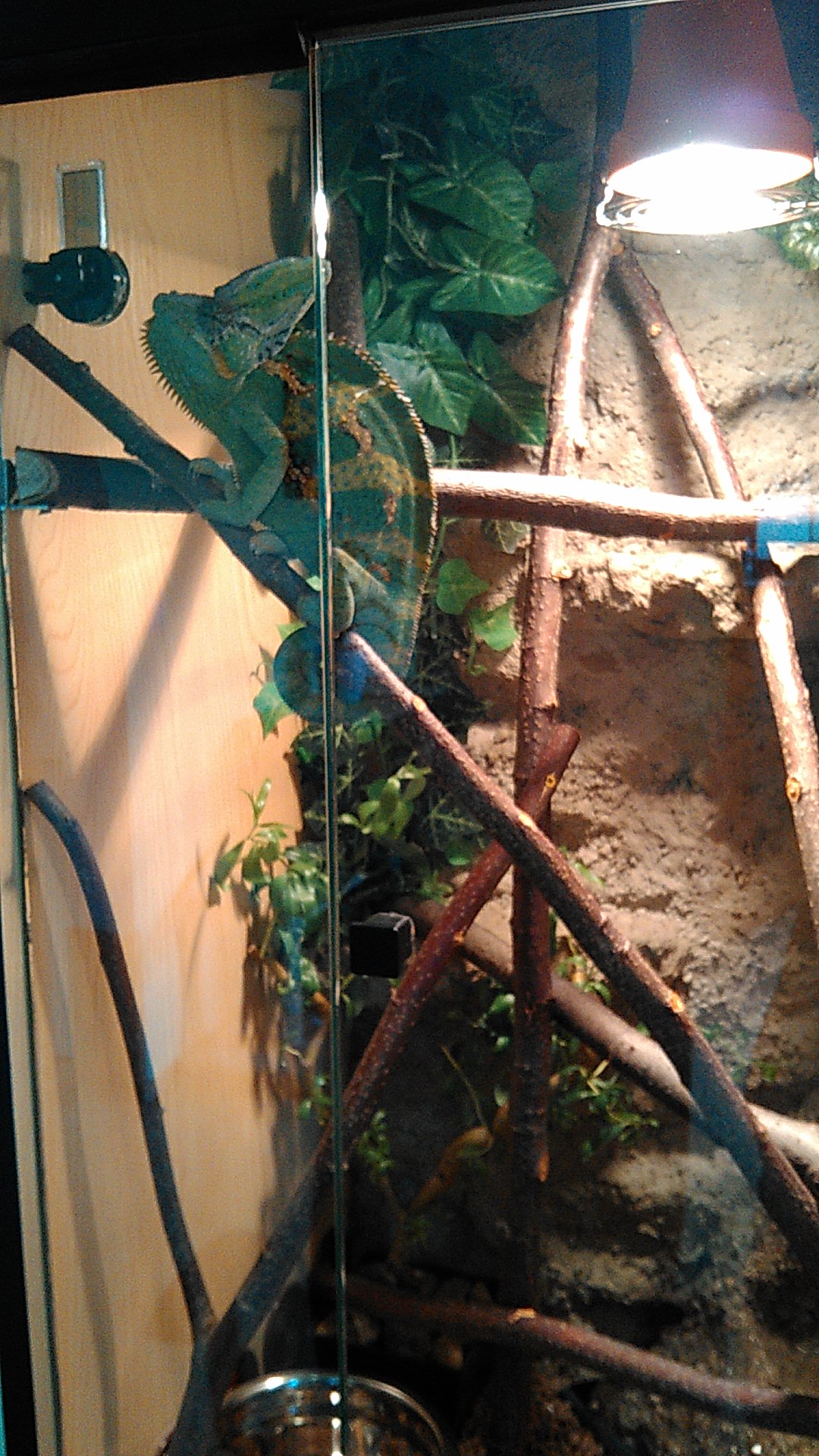 Mám také problém s chamíkem a už si s ním nevím rady.Dříve jsem choval cvrčci,ale dost smrdí a jsou náchylní.Proto jsem s nima skončil a ted chovám šváby turkinstánský.Moc je nechce ale když mu je obaluji ve vit. NutriMix tak mu chutnaj. Chamík má každou chvíli zalepené oko a proto špatně střílí na potravu.U nosu se mu dělá bílá hmota.Používám Floxal od vet. V ter.má 60w žárovku a Retiglo 10 14w.Teplotu tam má kolem 30 stupnů a vlhkost kolem 45%.Tady přidávám nějaké fotky. Díky za pomoc a nějaké rady.