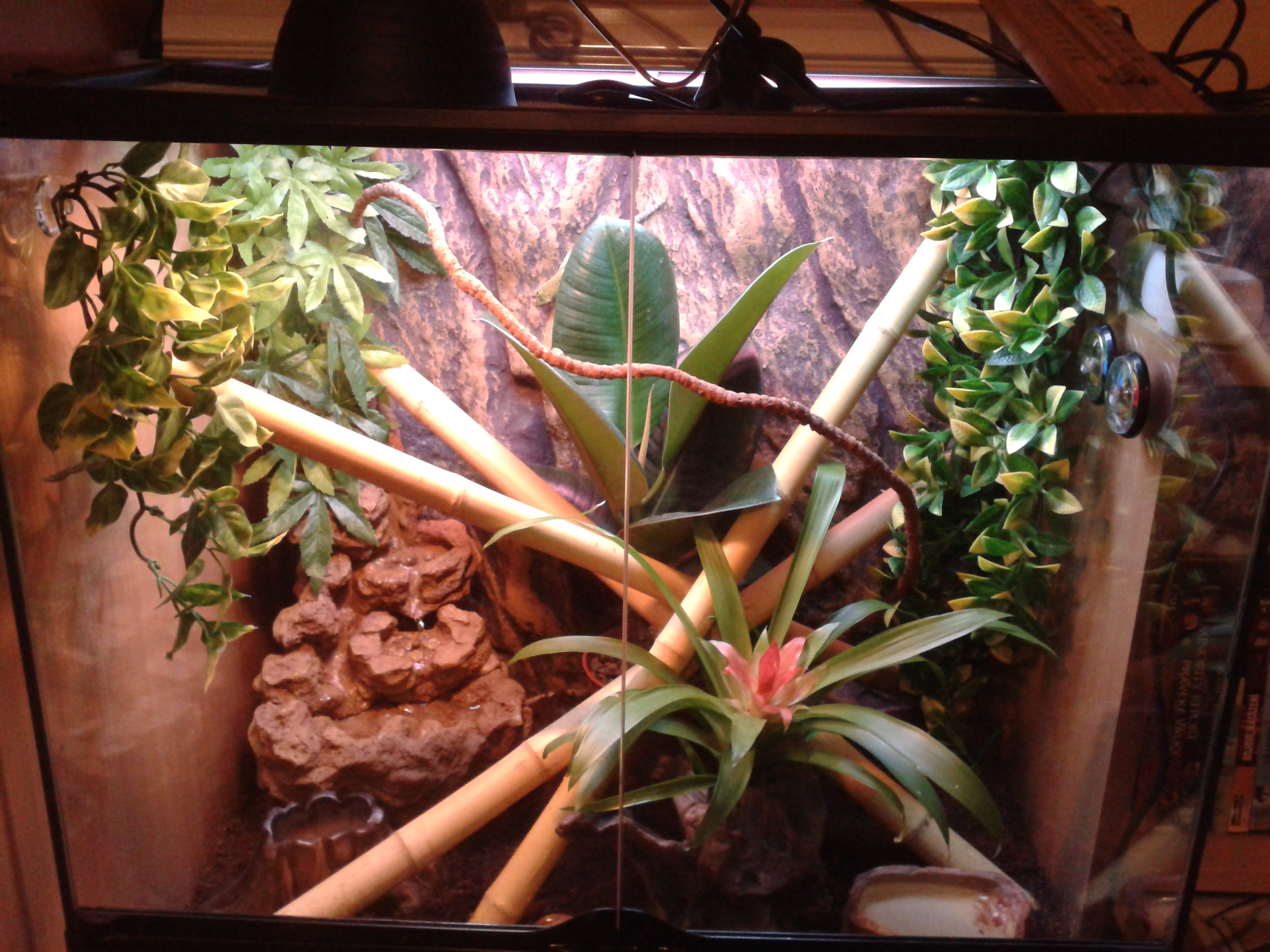 spis si kup kabel treba tenhle http://www.exo-eko.cz/Topne-kabely-do-terarii/Kabe l-topny ten je i do vlhkych terarek.omotej ho kolem nejake te umele rostliny a bude to ok,lepsi nez nejaky ten strom nebo co si to tam daval