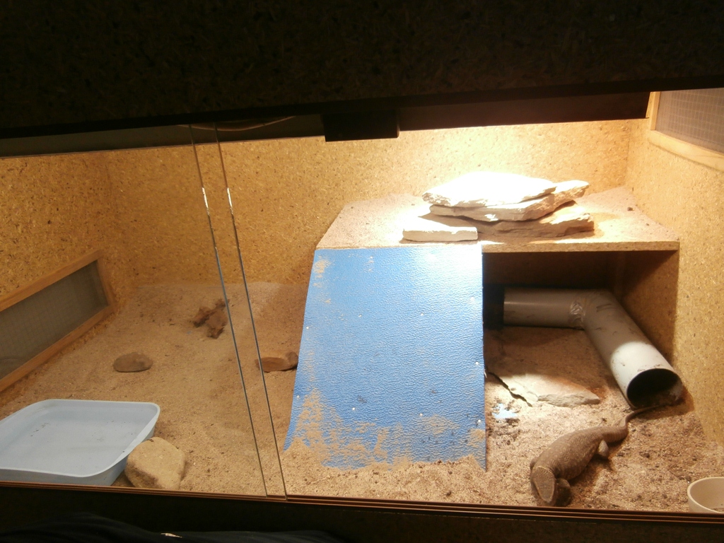 Ještě vyměnit tu žárovku za bodovku a dát ji podle teploty víc nahoru. Dal bych tam taky více písku pokud máš nějakej klidně o 5cm větší vrstvu + sehnat tu zářivku(trubici) na dosvícení