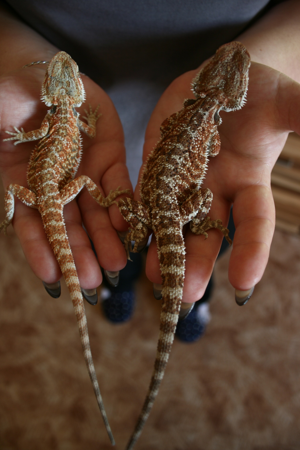 Dobrý den, nezdá se mi, že agamky jsou staré 4 měsíce. Jak často krmíte? Zdají se mi dosti vychrtlé…