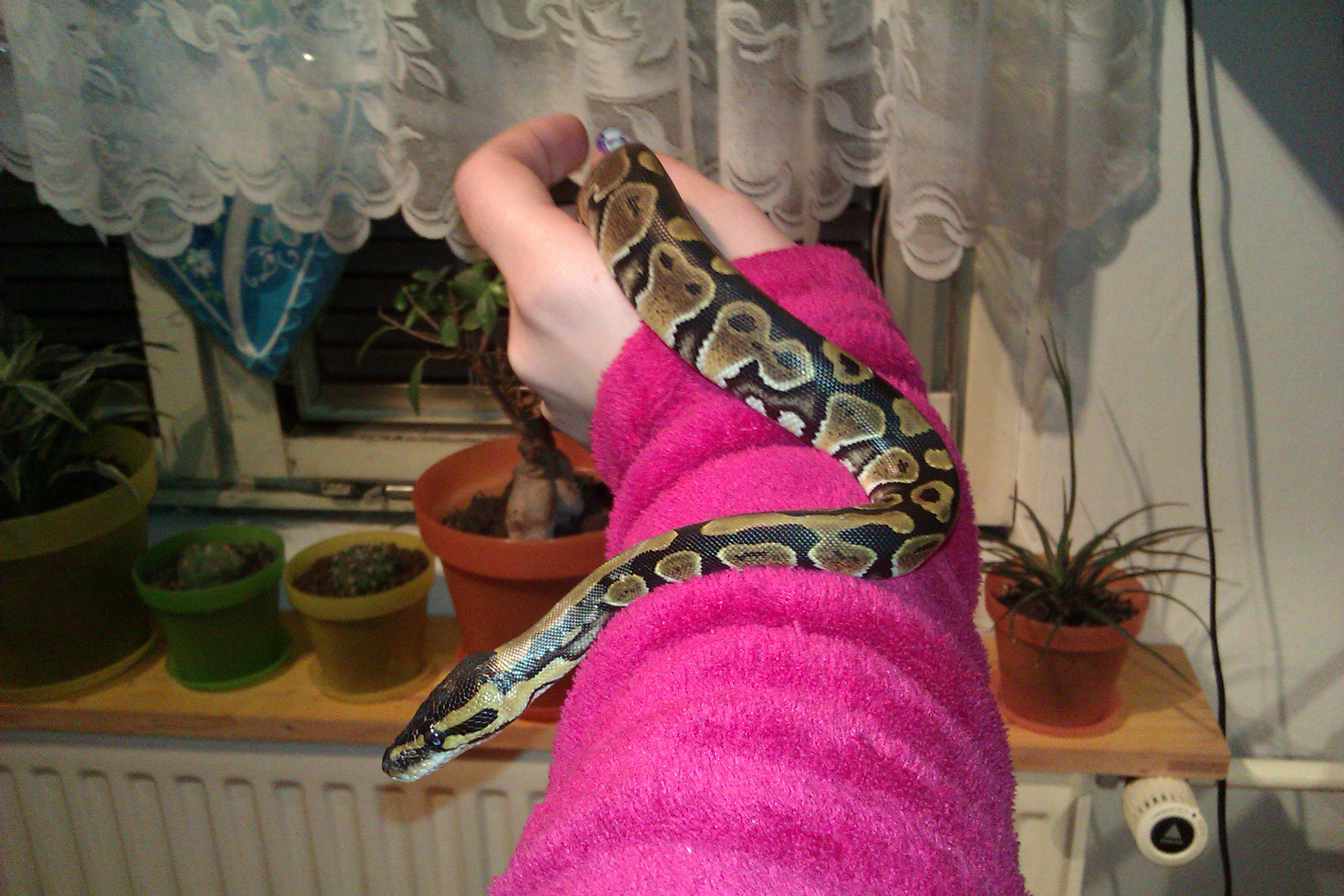 Vdaka,aj som myslela ze moze mat okolo 4-och mesiacov.Povedalu mi ze bol krmeny skakavkami raz tyzdenne,no u mna uz v pohode raz za tyzden zere odrastenu mys nieco mensiu ako dospelu.Staci mu to?Ale pekne vidno ako rastie aj hrubne.