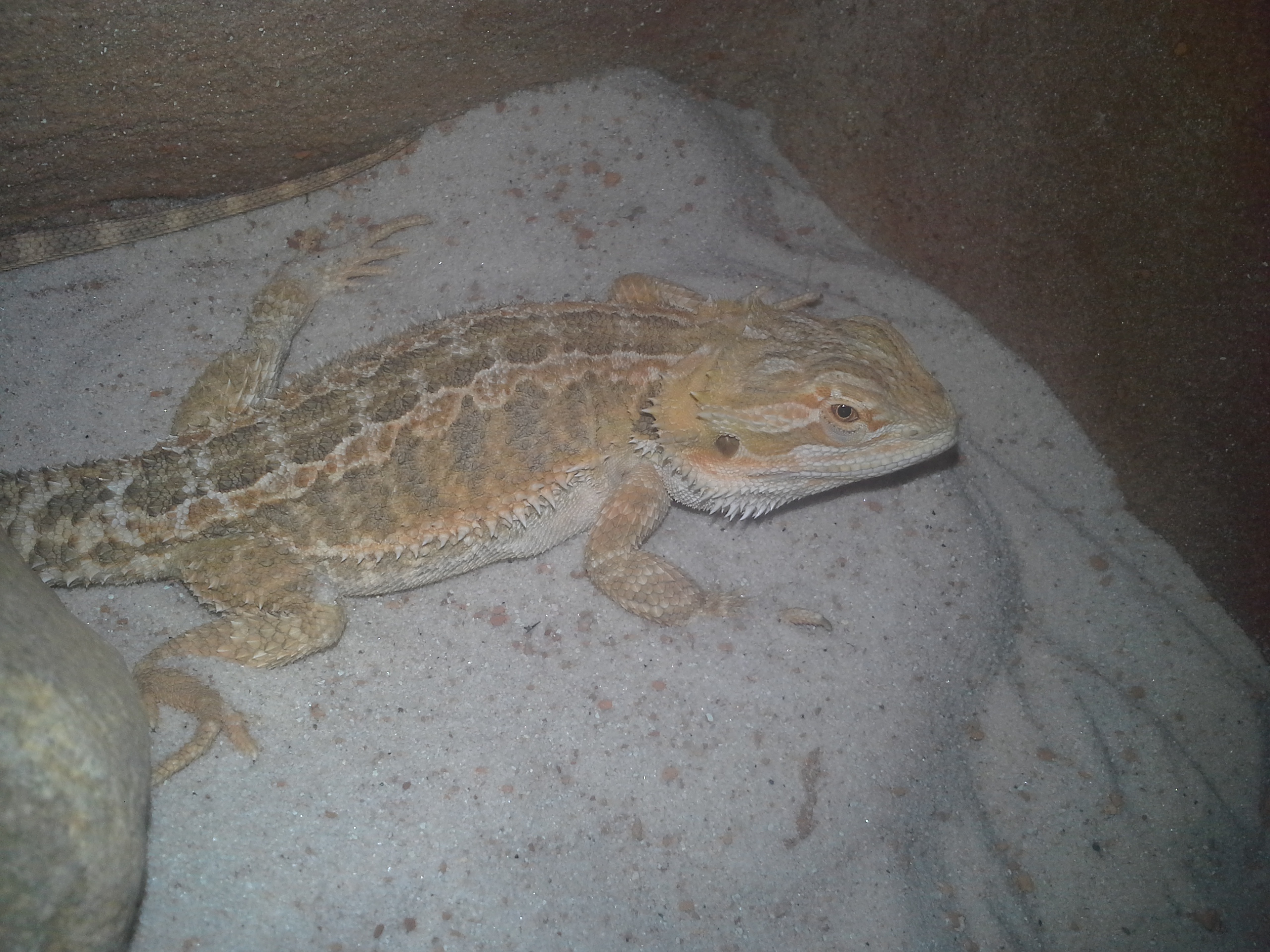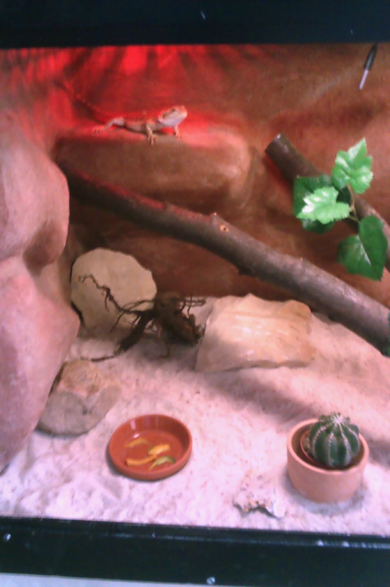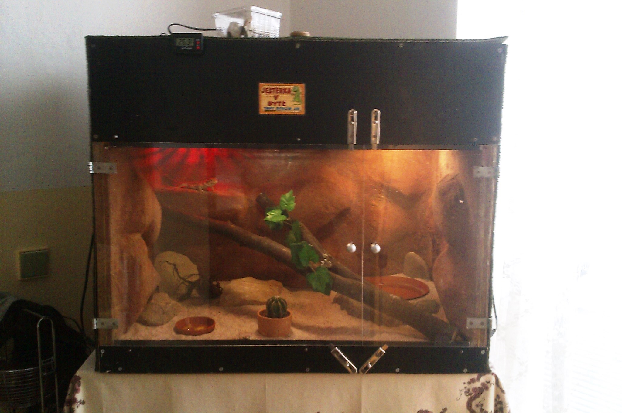 Taky má zbytečně dva výhřevy na obou stranách terárka, z čehož jeden je ta podivná infračervená věc, jejíž "módu" poslední dobou fakt nechápu...
