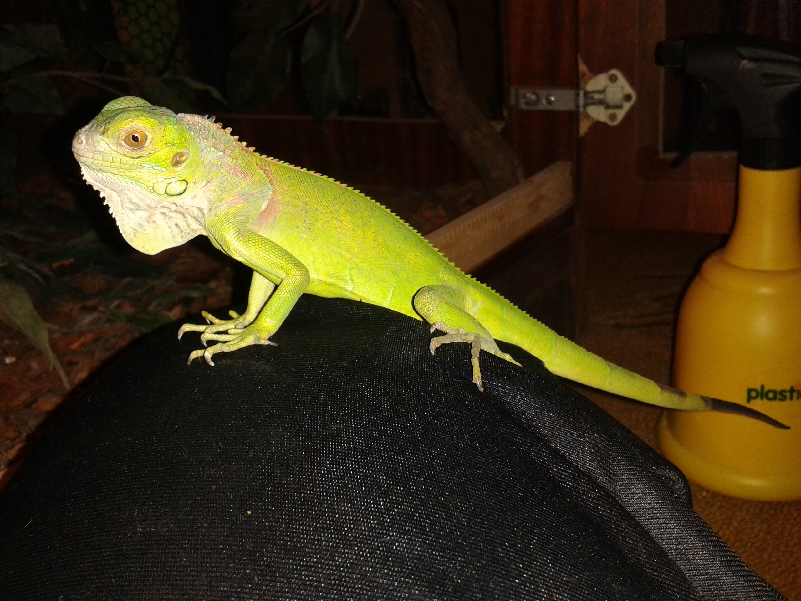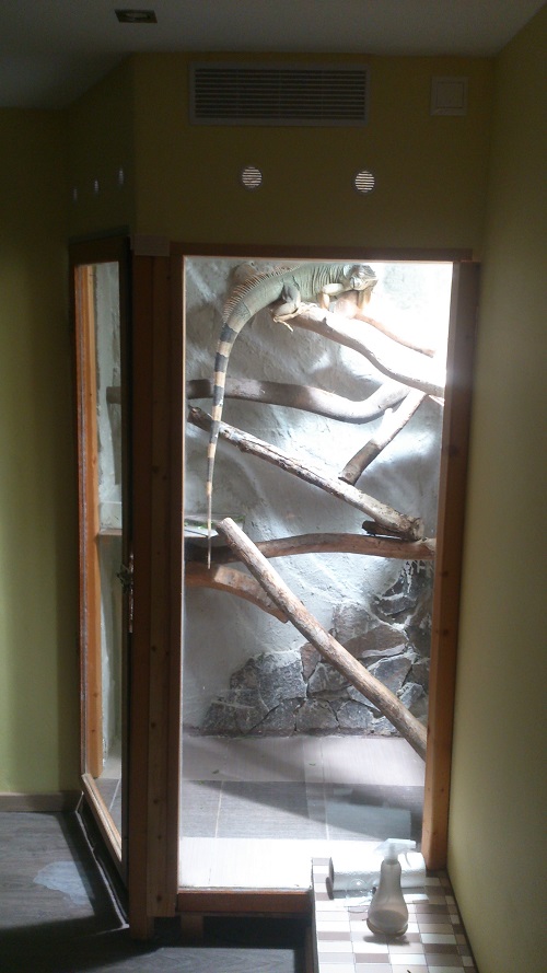 Ahoj tak ja mám leguána od roku 2009. Cez leto kŕmim tím, čo mi dá záhrada a cez zimu rukola, polníček, vňate, strúham mrkvu, uhrku, jablko, listy kalerábu a všetko možné. Hlávkový šalát som mu nikdy nedával a ani mu ho nikdy nedám. Radšej čínsku kapustu. Osvetlenie Iwasaki, Arcadia, príležitostne tam mám 150w reflektor, s ktorým keď je moc zima hneď ráno, tak pomôže rozkúriť terárium. Spravil som mu automatické rosenie. Terárium je zateplené polystyrénom, z ktorého som vlastne urobil pozadie. Má rozmery 140x110x210. Kľudne sa tam zmestia aj dvaja. Lego má 145 cm (103 cm chvost, 42 cm telo). Má všetko čo potrebuje a keď mu niečo chýba, tak mu to ihneď zaobstarám. V prílohe máš foto na inšpiráciu.. Ak sa niekomu niečo nezdá, napíšte rád si vypočujem návrhy na zlepšenie.