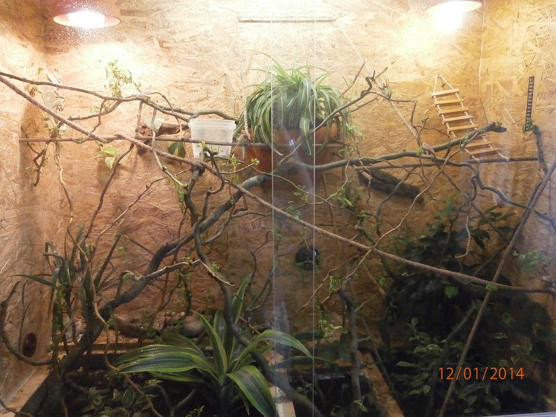 Je to dáno teráriem .Je tam pouze jeden květináč pro žárovku.Už se ale scháním po jiném větším.Tak 50x50x100. Tohle je pro ní maličké...Jinak to zatím vyřešit nejde
