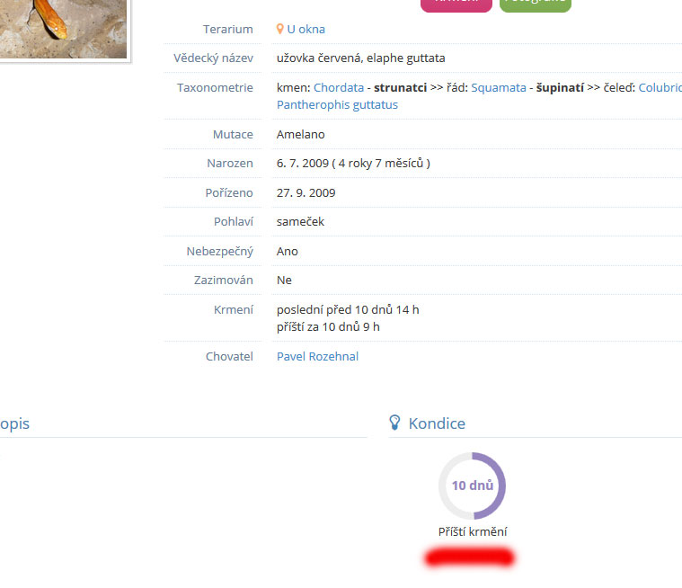 Sdílím s tebou tento názor, avšak i tak si chovná zvířata nechám v soukromém režimu a sdílet budu pouze odchovy, kde je fajn, že je zobrazená fotografie, váha, poslední krmení,... celkový stav, a je aktualizován. Tahle myšlenka se mi strašně líbí.