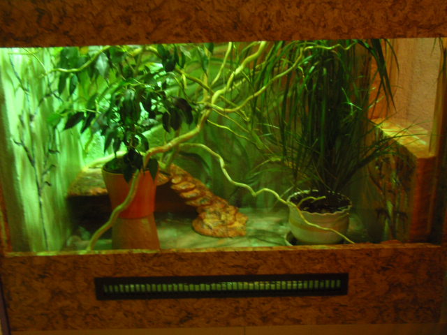 Dobrý den. Nechci zakládat nové vlákno, tak svůj dotaz vkládám zde. Chceme si pořídit chameleona jemenského, proto bych velice rád uvítal jakoukoli radu nebo výtku k terariu, které jsme vytvořili. Terarium je o rozměrech 150x100x60. Větrání dole zepředu mřížka 60x5cm nahoře v podstatě celý strop (zůstal tam jen rám aby drželo pohromadě a bylo kde položit kabely). V terariu jsou větve vrby kroucené (hezky přemrzlé a oloupané), květiny: fikus, dracena 2x a asplenium, na podlaze bude rašelina s pískem 1/1. Jako zdroj UVB a tepla slouží výbojka terrasaur uvb 100w a na dosvícení pokud bude třeba bude lineární zářivka 40 - 60cm. Děkujeme mockrát za nápady, tipy, rady atd....