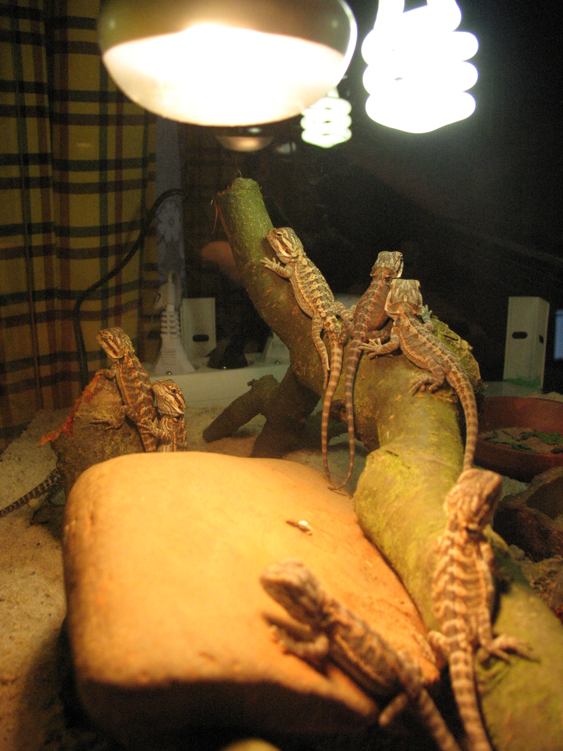 Jedna s agamek . Kolem tří měsíců a už chybí jen milimetry a bude mít 40cm :) Co teprve prckové které si už někdo odvezl a měli více. Škoda že je tak těžké donutit lidi, aby komunikovali, když si koupí agamku