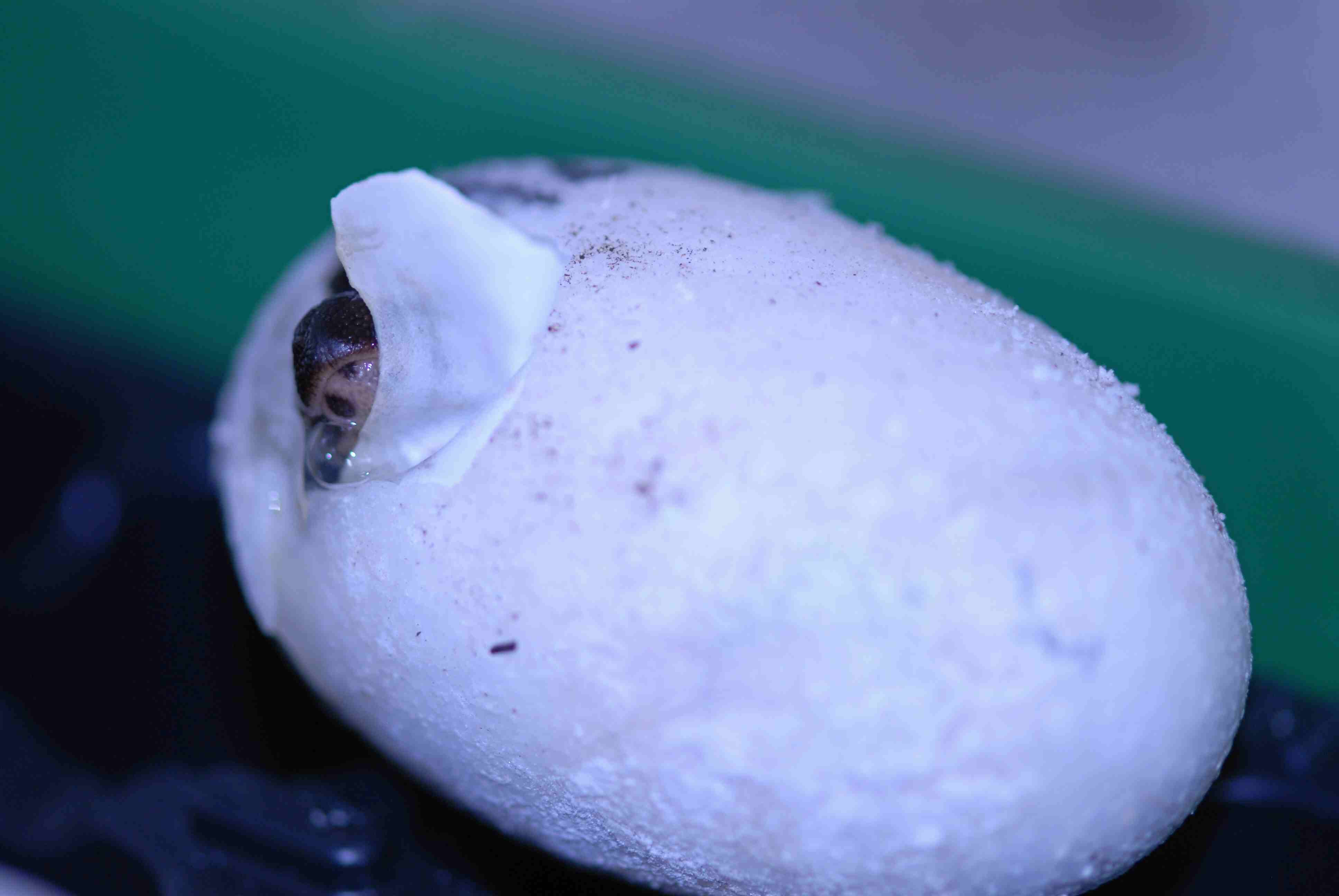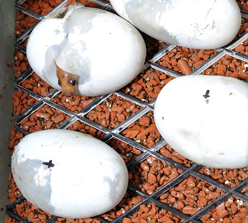 V druhé snůšce od větší ze samic Indotestudo elongata se ze šesti vajec (a šesti mláďat) překvapivě vylíhla tři s téměř čistě žlutým karapaxem (v první snůšce bylo takové jedno): Plastron má ale normální kresbu, jde nejspíš jen o zajímavou náhodu: