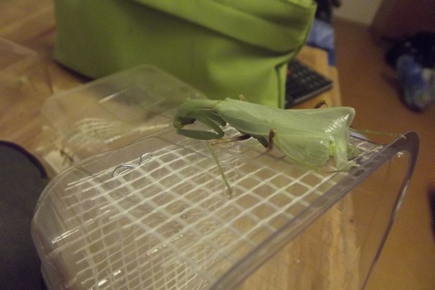 mám doma kudlanku (sameček), které se nepodařil svlek. Deformace křídel je malá, zato mě děsí, že má trup ohnutý do oblouku, takže když leze, má hlavičku skoro na zemi, k tomu má zdeformovanou jednu nohu. Má problém se udržet zavěšená na vrchní stěně terária.