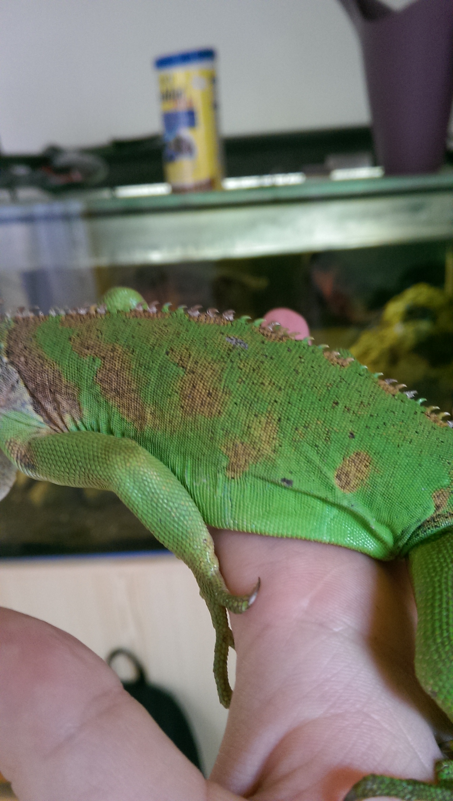 Sfarbenie-už spomenuté zvyšky starej kože pleseń parazity. Chce to poriadnu fotku.Terko už je väčšie…