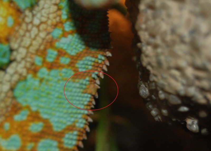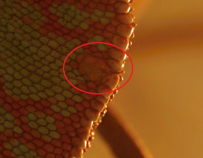 Vydezinfikovala bych mu to naředěnou betadinou a pohlídala, aby v terárku nerejdilo moc nesnědenejch cvrčků. Popřípadě hoď do terárka i něco pro cvrky, ať ti neokusujou chameleona, ale třeba jabko/piškot/psí granule..