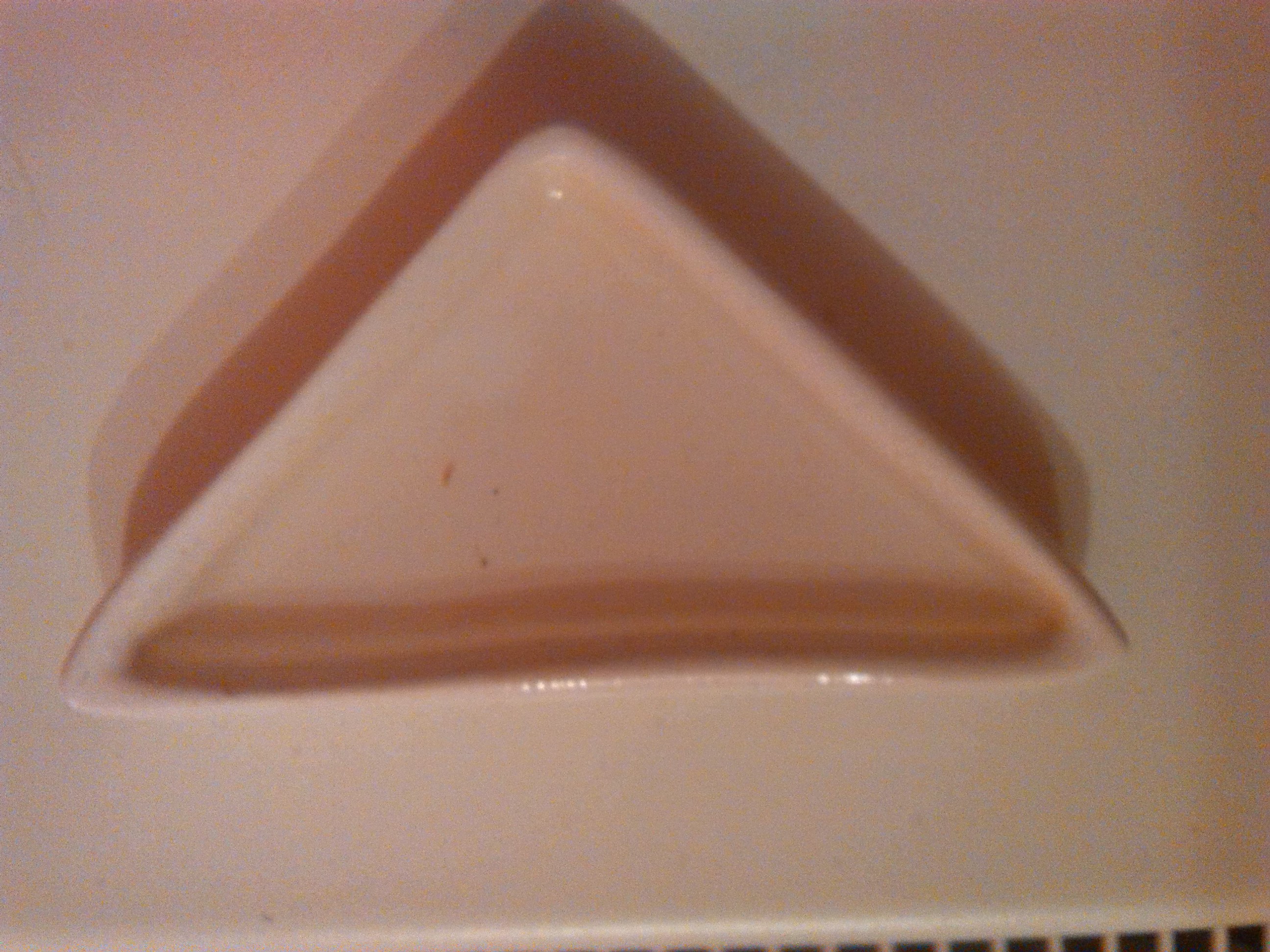 Miska má trojúhelníkový tvar přibližně dlouhá 8 cm +- nejdelší strana, hluboká asi 1 cm +- a vody st…