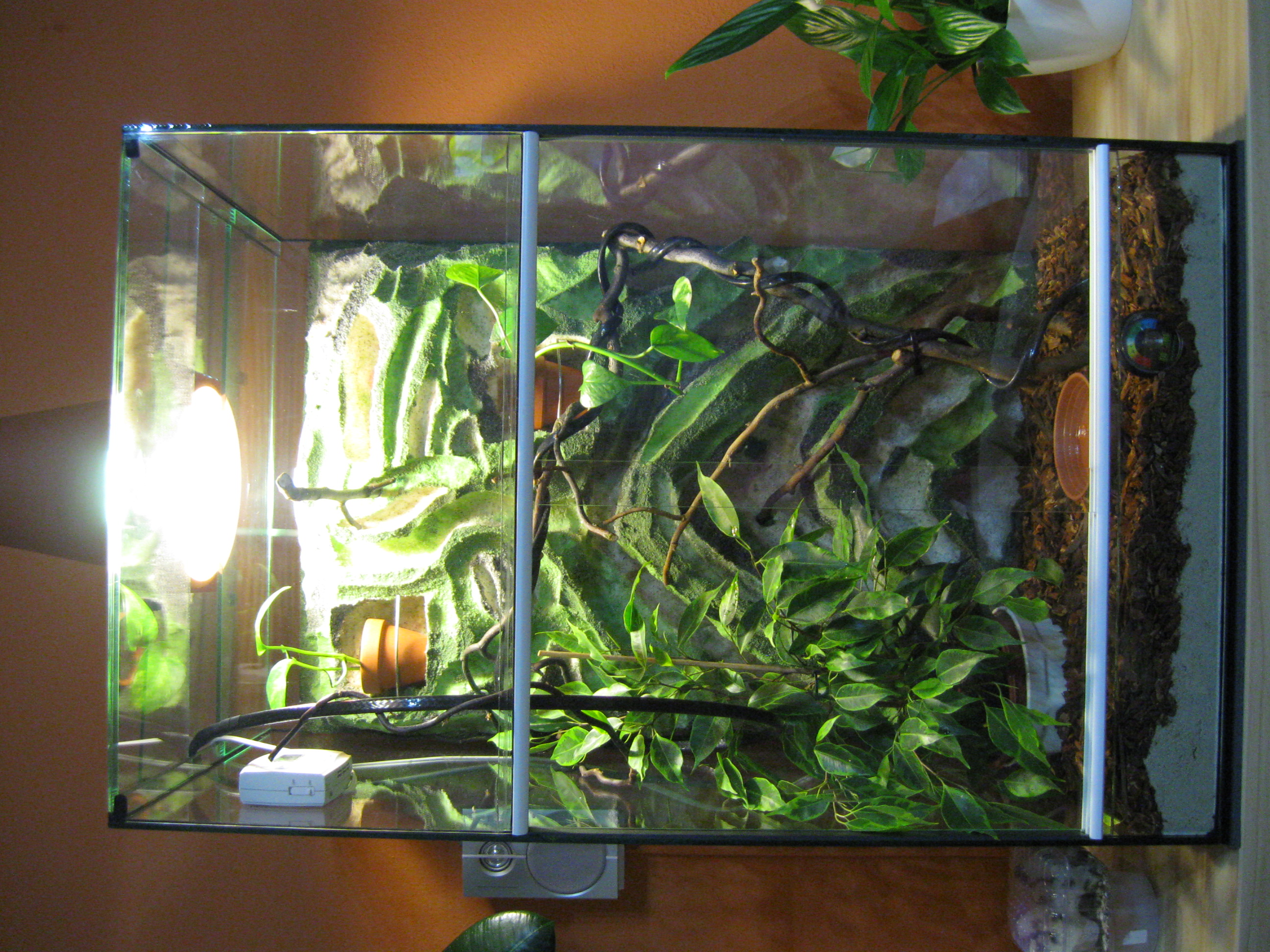 Větrání je prostě malý, v terárku , který je takhle relativně vysoký, je potřeba mít větrání i ve spodní části, aby vzduch mohl proudit. Blbý větrání může vyústit mimo jiný i v různý kožní problémy.