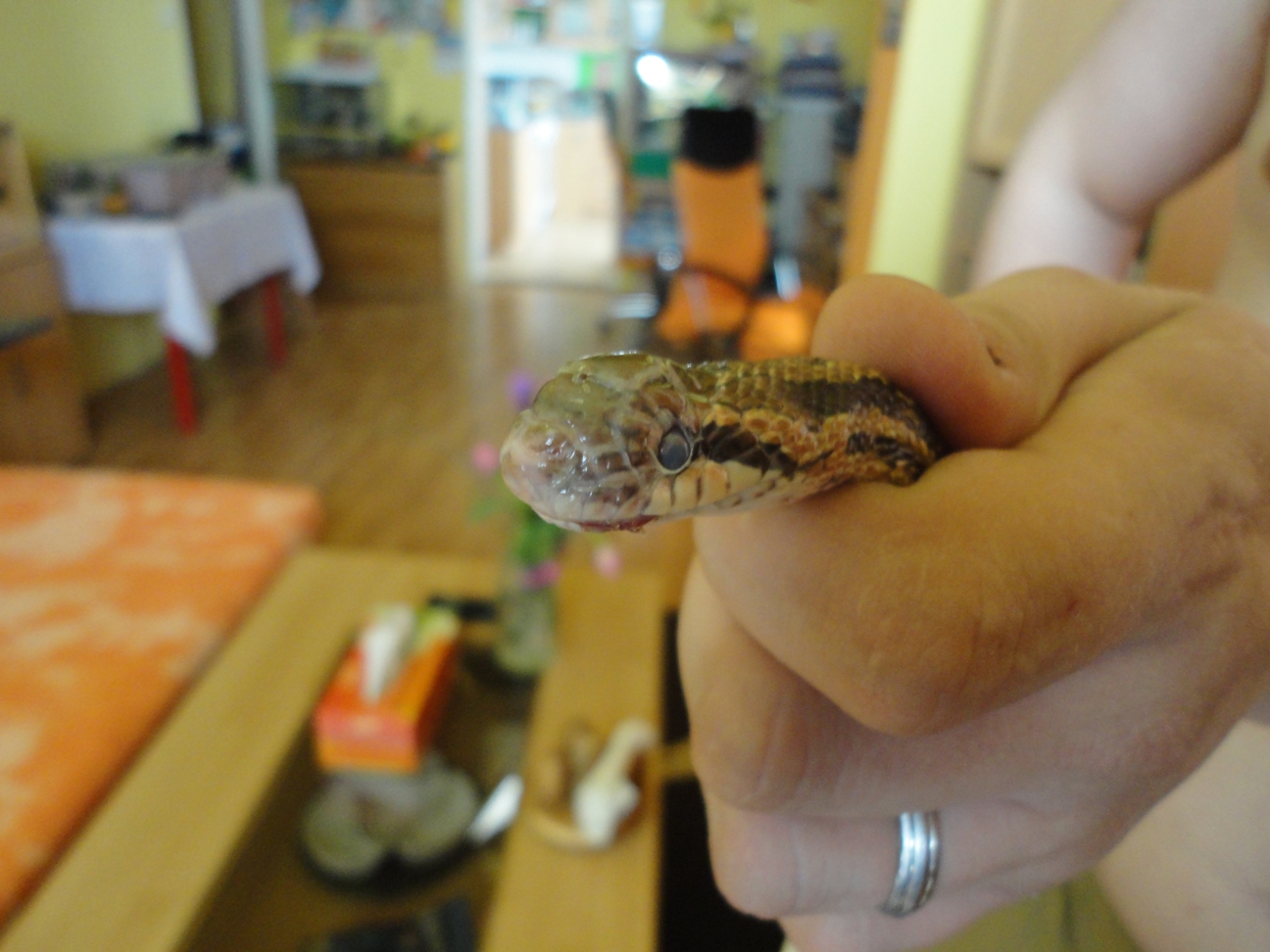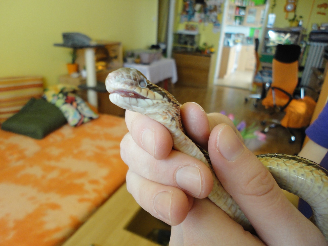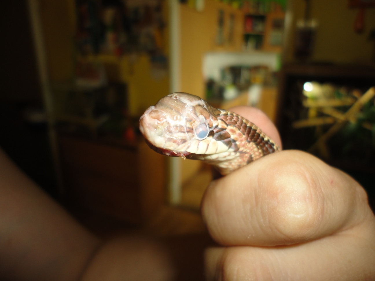 Prosím o radu, mám problém s užovkou dvouskvrnnou - e. bimaculata, začátkem prosince jsem užovku zazimoval, v březnu odzimoval, po odzimování se normálně spářila se samcem, přijímala potravu, vše ok, žádná změna terária nebyla, vše jako do zimování, a před několika dny se jí udělala boule na čele a dnes když jsem se na ni díval, tak jí natýká celá hlava, má zapadlé a zakalené oči a zakalenou hlavu jak před svlekem - viz fotky. Nevíte někdo, co se to s ní děje? Máte někdo podobnou zkušenost s jinými hady? Nevypadá vůbec dobře... předem díky za jakýkoliv názor, radu nebo koment