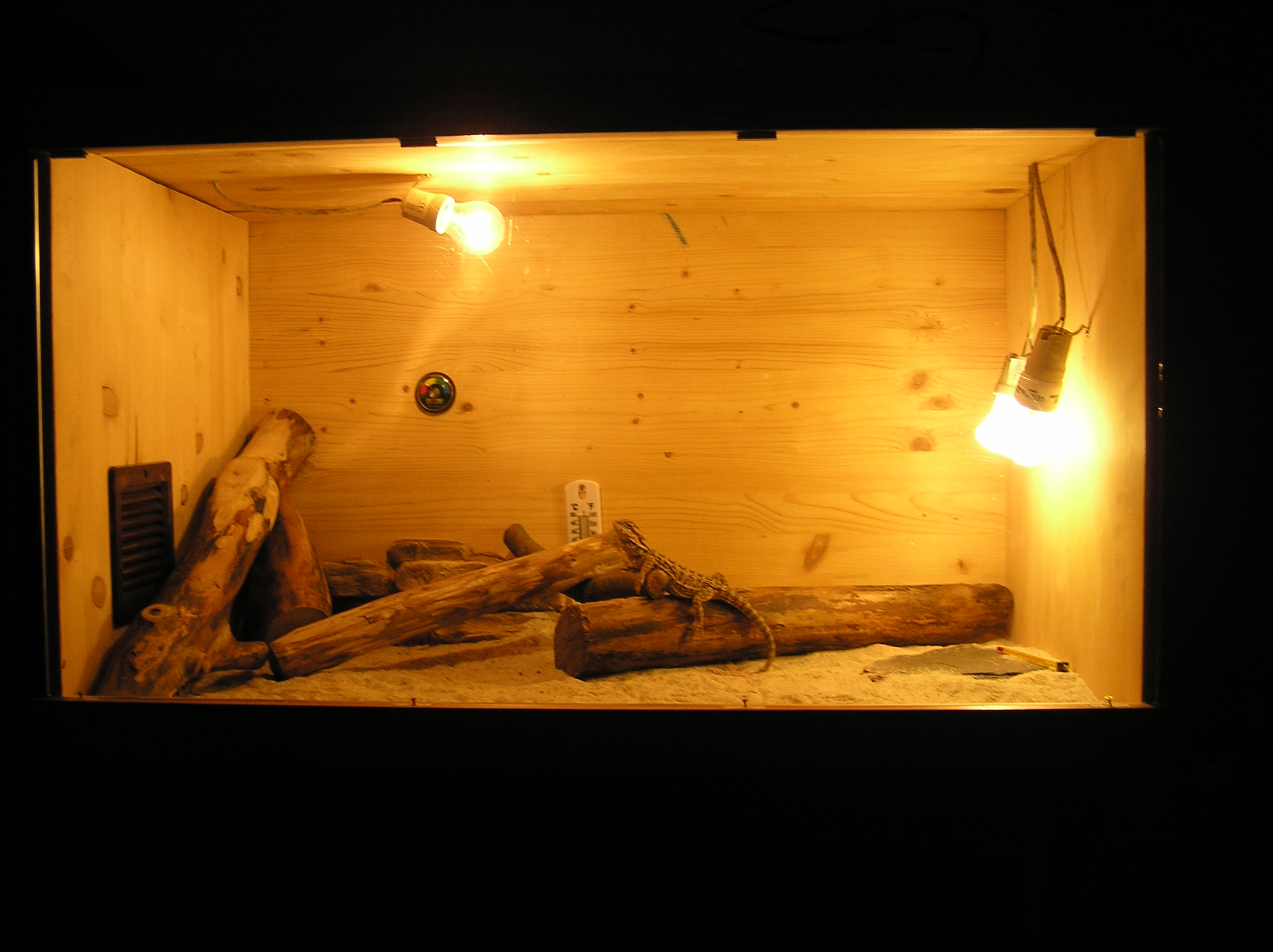 Terárko ještě není dokončené. Je udělané tak aby tam mohl být. Dokončuju stěnu, lišty na sklo, větrání a další doplňky.
