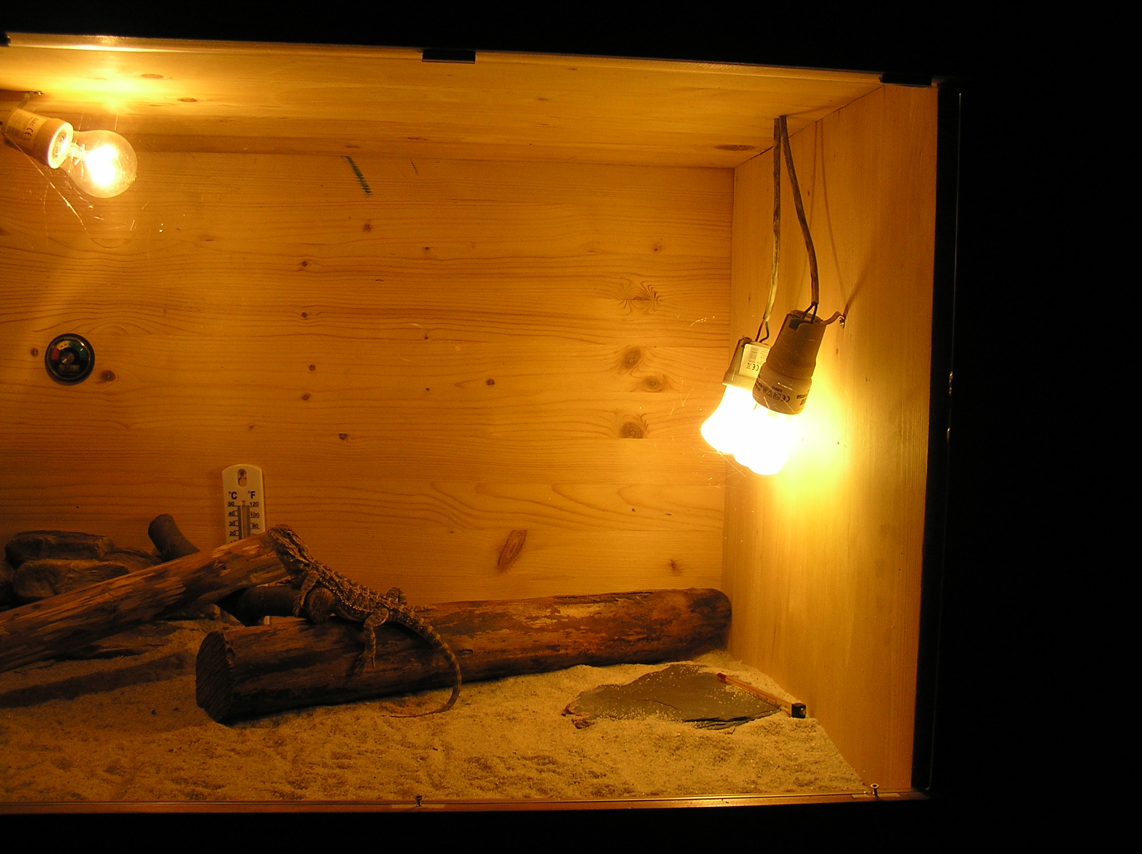 Jasný, tohle terárko dokončím a bude mu sloužit zhruba na půl roku, potřeboval jsem v nejkratší době udělat provozu schopné nouzové terárko z dostupného materiálu na půdě protože předtím jsem ho měl pár dní v provizorním malém akvárku. Koupím tu zářivku max do 95cm protože terárko má 98cm (to plánované bude 120x60x60) a dokončím stěnu. Pak budu mít půl roku na sestavení správného teraria z OSB, zajímavou a šplhající stěnou a vše tak jak má být. Toto terárko pak akorát přizpůsobím na chov Dubie ale to až zpracuju přítelkyni a spolubydlící v baráku :D