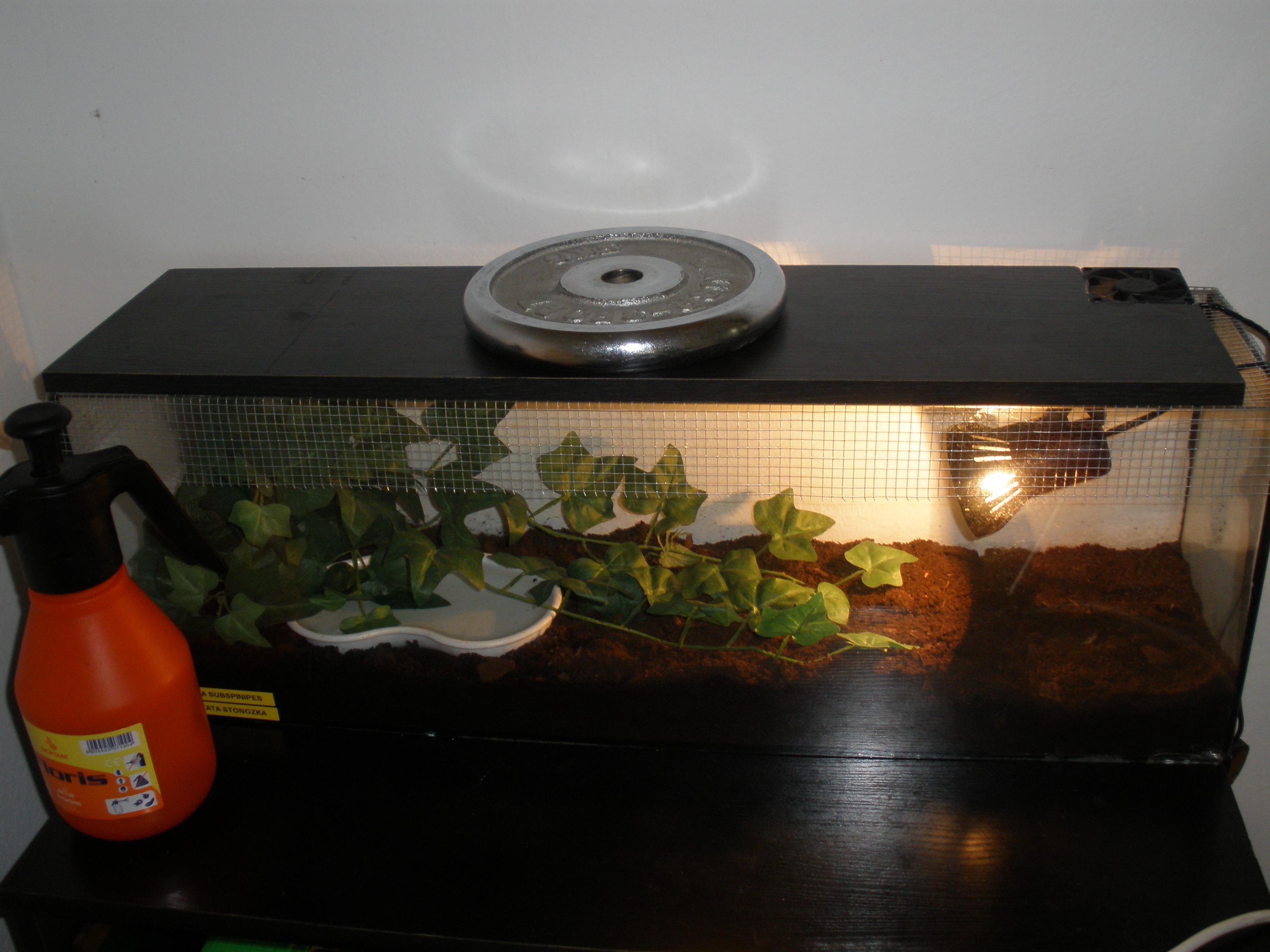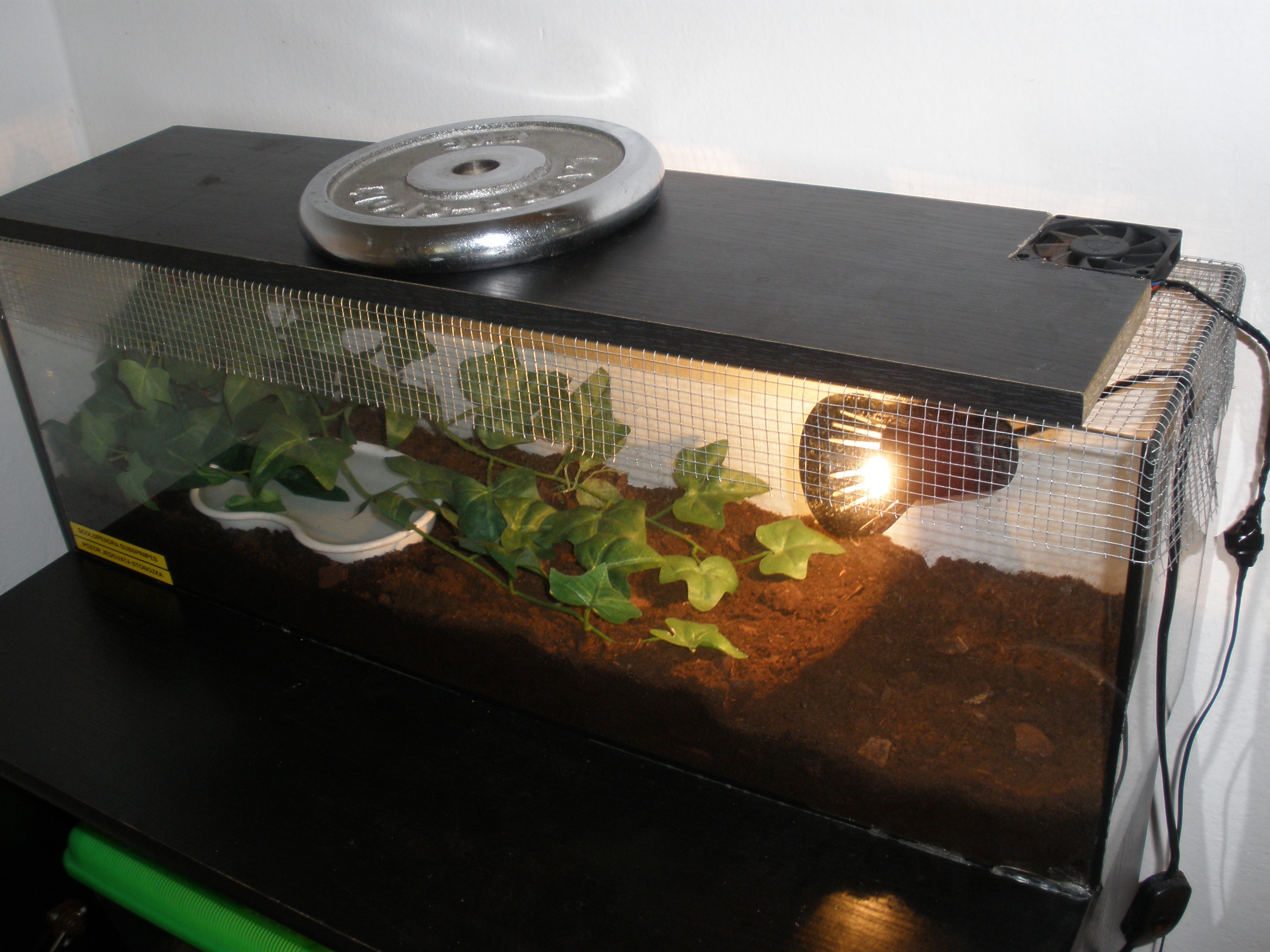 To jo má scolopendra mám ji už asi rok akvarium sem předělal tím že sem použil jako víko pletivo na to pletivo dřevěnou desku do ktere jsem vyřezal otvor na malí větráček kvuli cirkulaci vzduchu puda je mokrá ne převlhčená na jednom místě víc na druhém mín.Miska s vodou a umělá kytka.Krmím dle potřeby stonohy myšima,holátkama mládaty gekonu a hmyzem.Jinak je strašně agresivní takže manipulace v terariu pouze obrovskou pinzetou.Doufam že se někomu hodí tyto info.