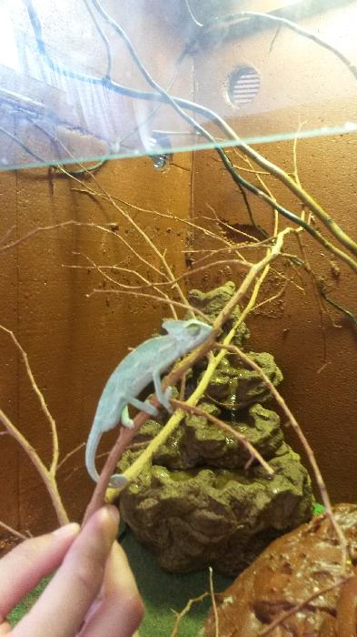 Jinak kdyby se sem náhodou ještě vrátila - doporučuju pečlivě pročíst toto: http://tera.poradna.net/q/view/220728-chameleon-je mensky-uplne-zaklady a zařídit se podle toho...věnovala bych pozornost zařízení terária (světla, větrání,...), krmení, podávání vitaminů a minerálů...no, zkrátka asi všemu.