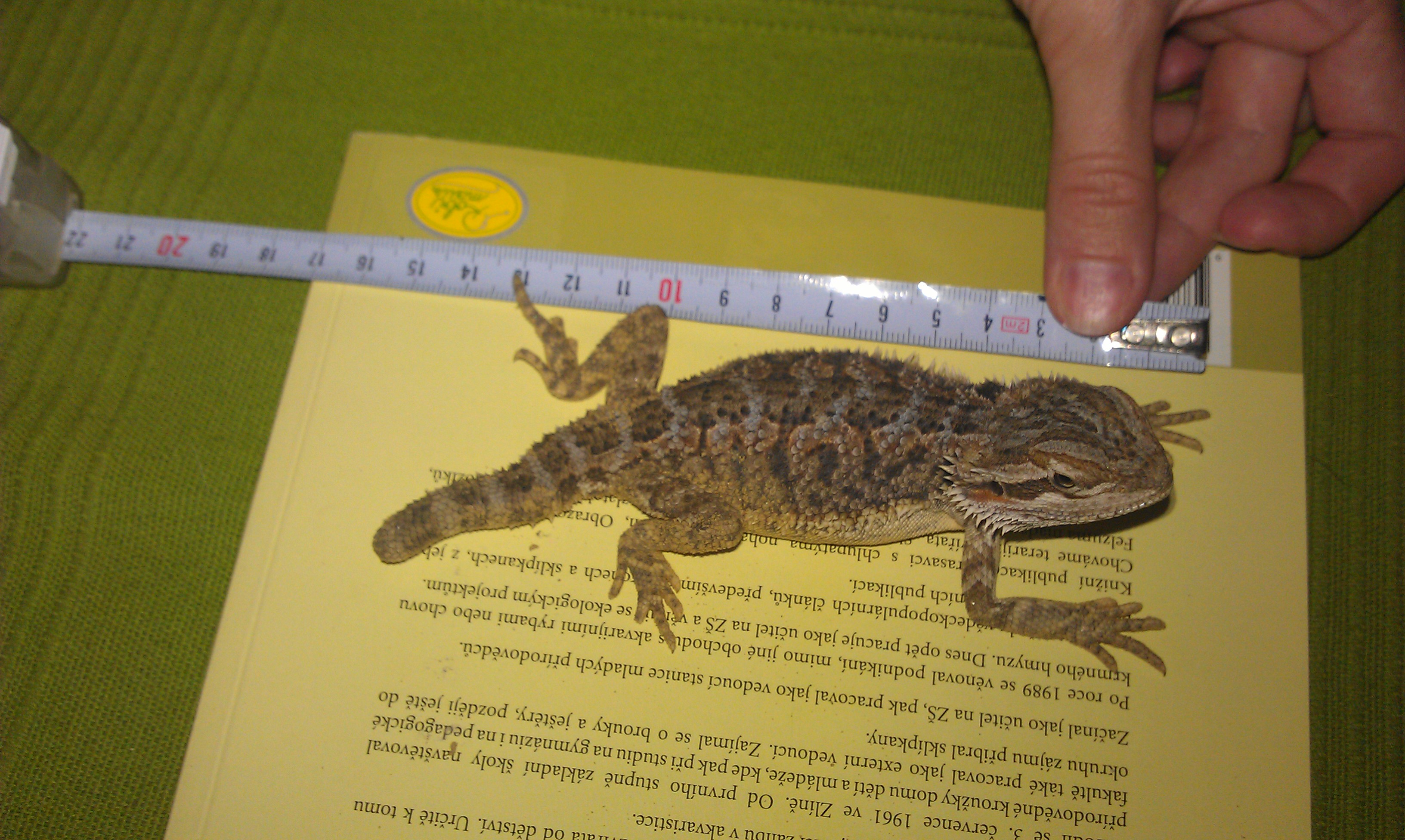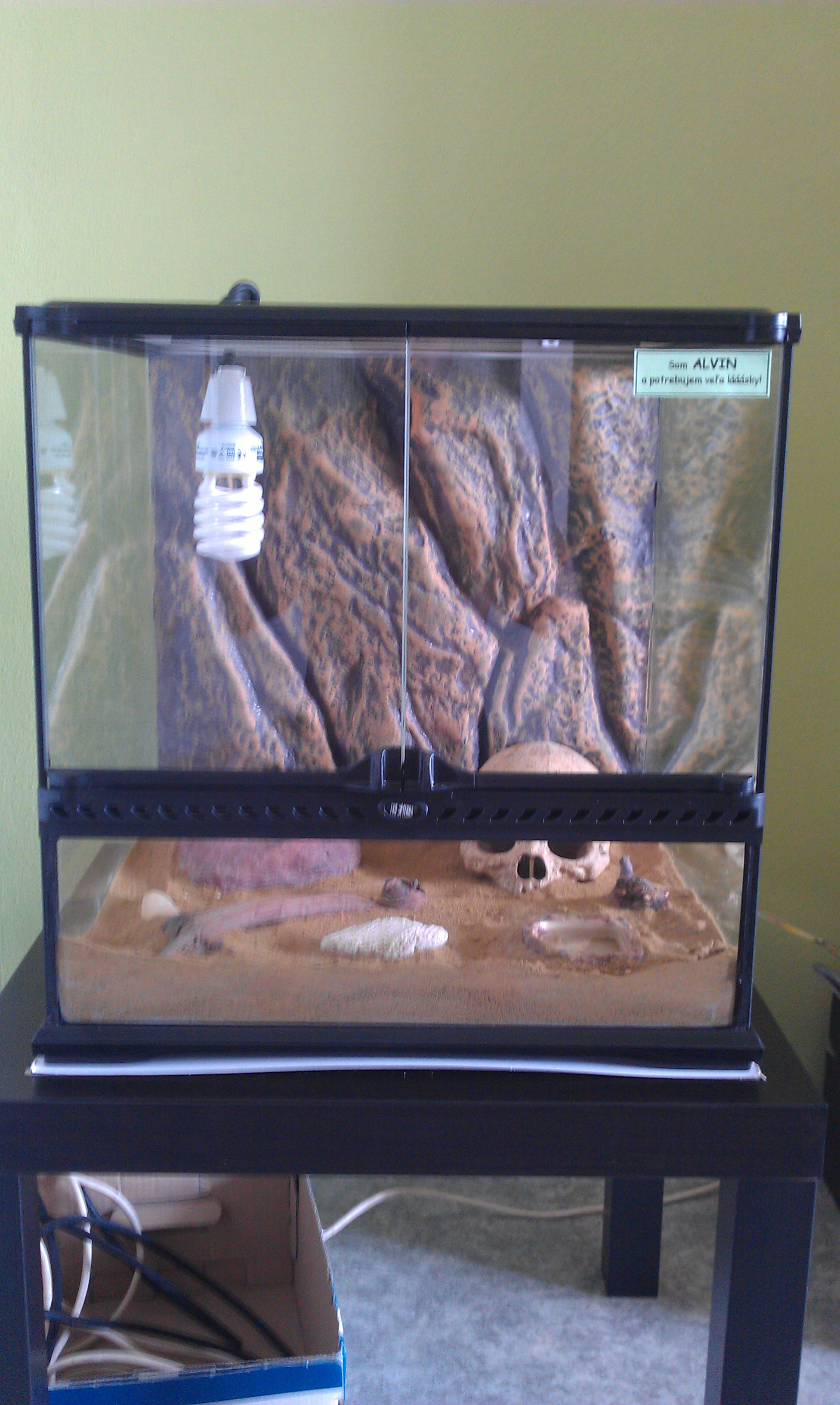 Ma asi 7 mesiacov (to uz asi mlada nieje) ale telo bez chvosta ma len tak 12cm, povodny majitel ho mal v akvarku, naspodu drevna stiepka, a ziarovka ziadna asi preto je tak maly. Terarko mu musi este mesiac dva vidrzat na vecie niesu prachy :-(. Na ziarovke pisu ze bi mala mat ucinny dosach 50cm ale necham si poradit. Ma tam vihrevni kamen nema sice 40 len 35-37 ale Alvi n je aj tak stale v lebke gde je dakych 30 stupnov a tien. Treba aj tu uva ziarovku ? Terapeklo som cital vias krat a aj tak mam v tich ziarovkach zmetok.