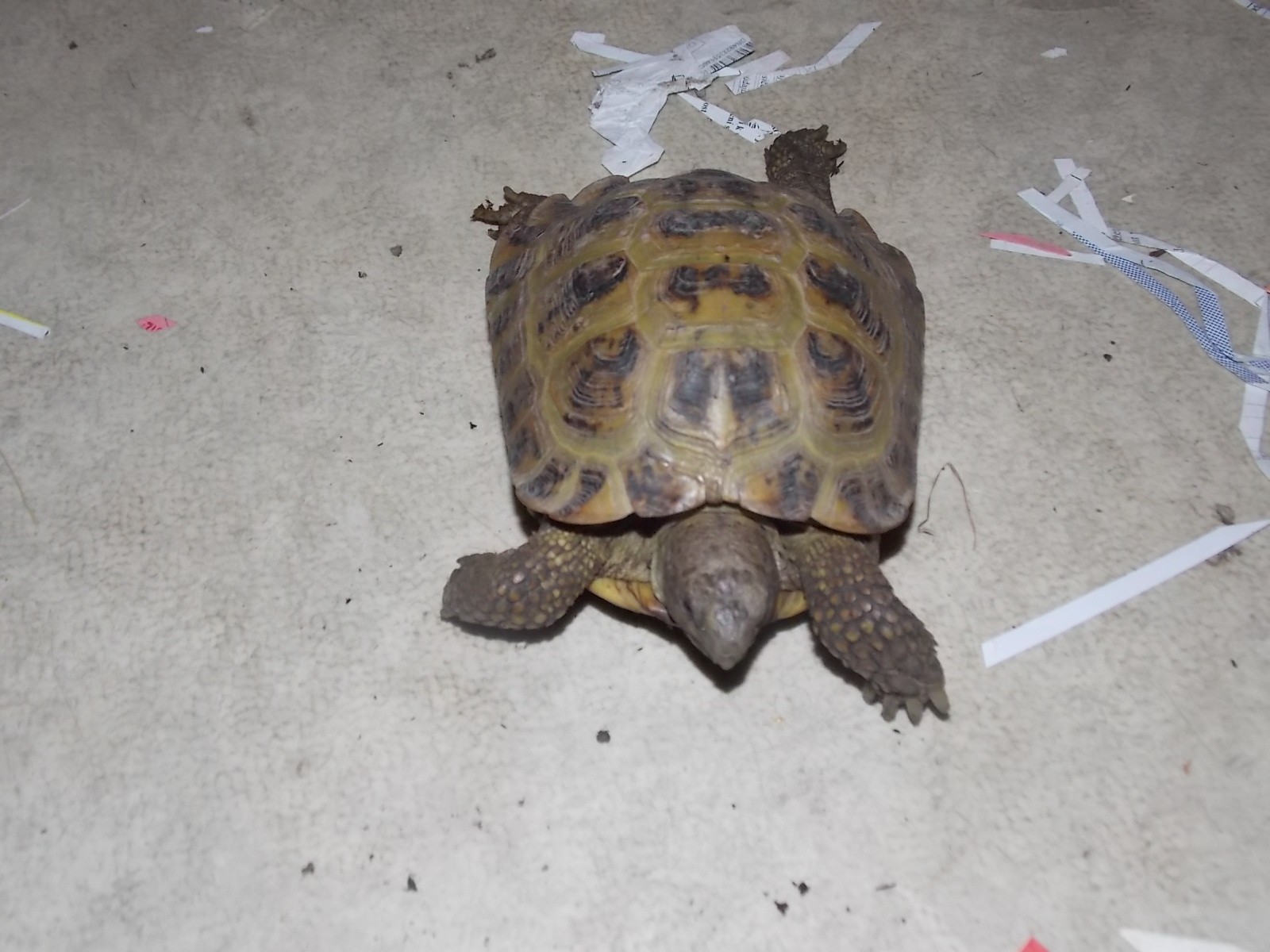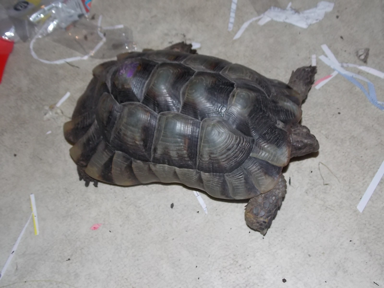 Margináta mi asi 4 dny nežrala tak jsem si nadávala, že jsem si koupila polochcíplou želvu, ale už žere, tak snad bude v pohodě, ale jak vypadá uvnitř.... Pán ho prý měl celé léto venku. Včera když jsem ho fotila, tak se mi zdálo, že trochu sípe. Tak budeme muset navštívit veterináře. Už mám ve výběhu obrubník, tak ještě nějaký ty prkna