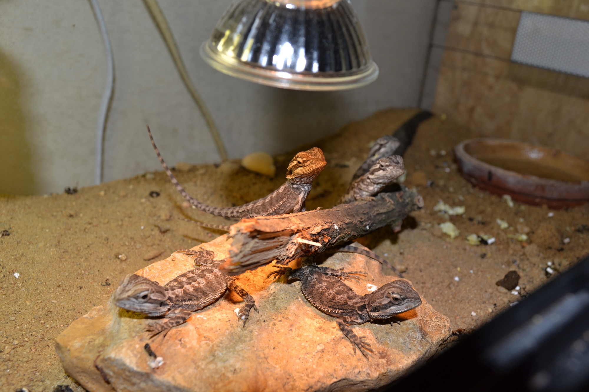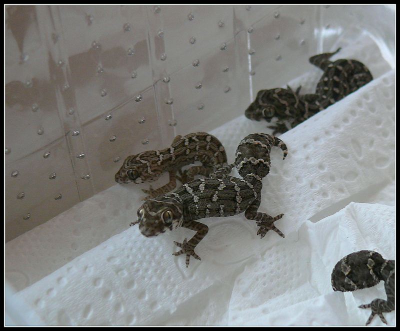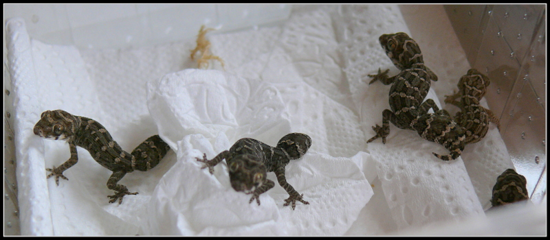 Trochu nečekaně, takže jsem jim ubikaci vyráběla ještě v noci. Jen těch informací k odchovu jsem moc nenašla, a ani tady nikdo nic. Tak uvidíme. Zatím je mám při denních teplotách 22-25 v noci pokles teploty asi na 18, UVB, baští octomilky obalované Biominem + mikrocvrčci "prach" o cokoliv většího než je velká octomilka zatím nemají zájem. Ale jsou to pěkní žrouti a rostou před očima