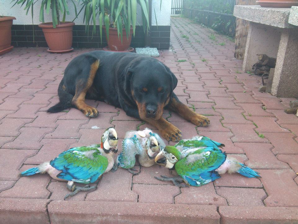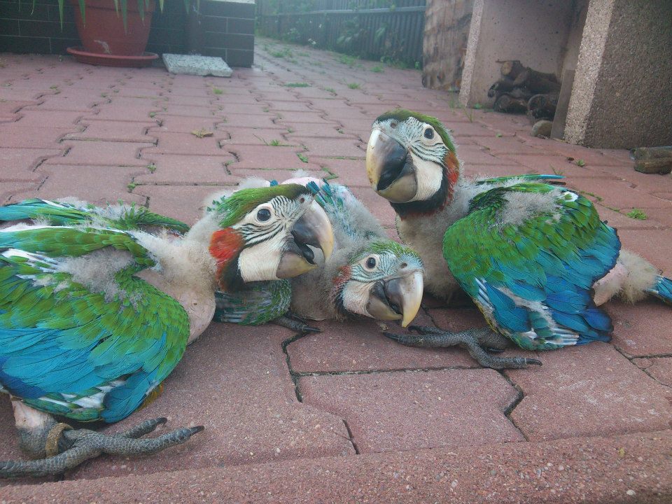 Jo jsou otec je ara ararauna a matka ara zelenokřídlý
