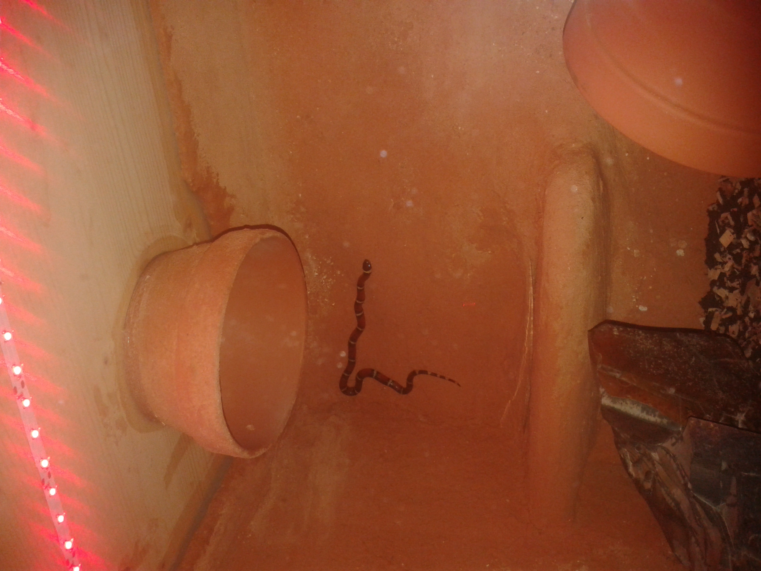 Pěkný prcek. V tom teráriu mi přijde trochu "ztracený". Na krmení ho, pokud to již neděláte, dejte do menší bedny, aby hole našel.