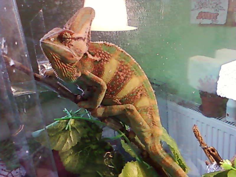 Myslel jsem prakticky všechny fotky. V podpisu mám odkaz na své stránky kde je chameleon vidět v sekci "Náš chov". Popřípadě až dorazim domů mohu vyfotit současný stav. ;-)