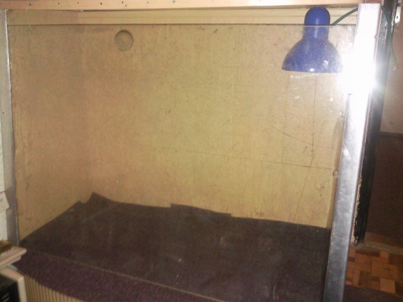 ...vim že to není ideální(prý kvůli tomu že se agamy bojí, když se na ně de zvrchu, ale mám to vyřešený tak že se bude odklápět minimálně, zásobování, výměna čerstvé vody je řešena upraveným filtračním zařízením z akvária a ve víku mám další díru-krmící otvor-