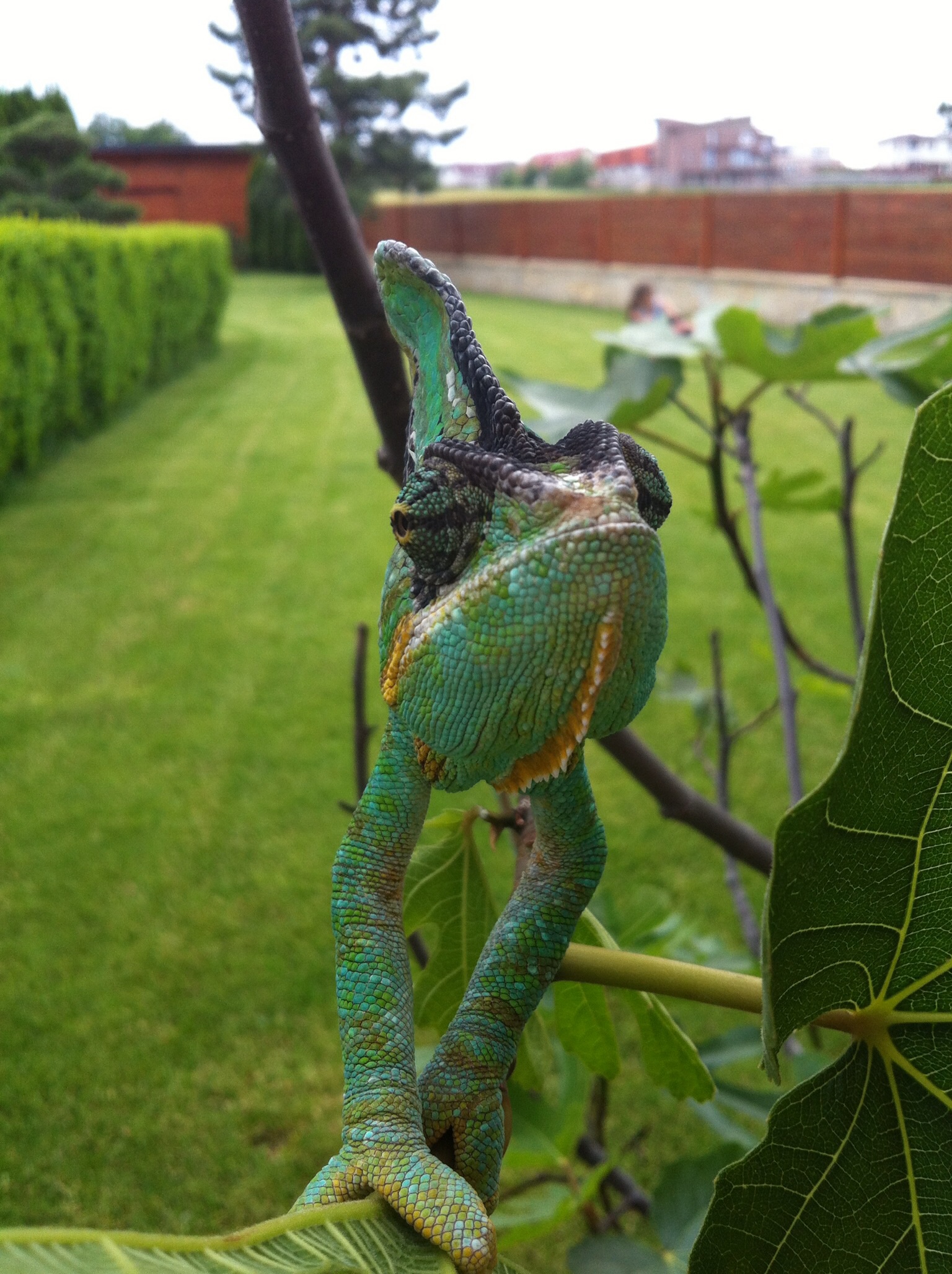 . Nám se zas leguán snažil ochutnat kytičky na povlečení.
