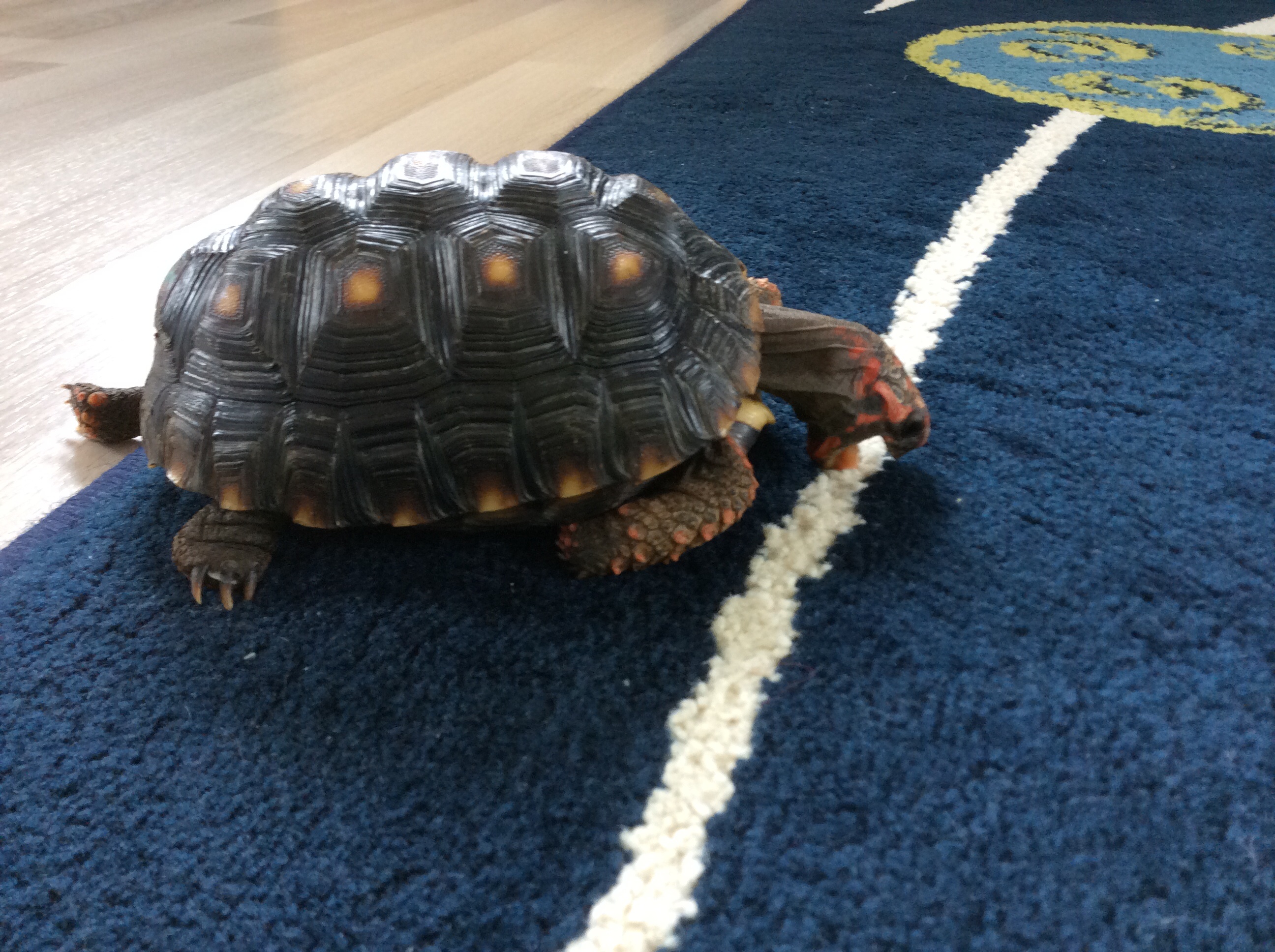 Mojí želvu neustále zajíma pruh na koberci :D .