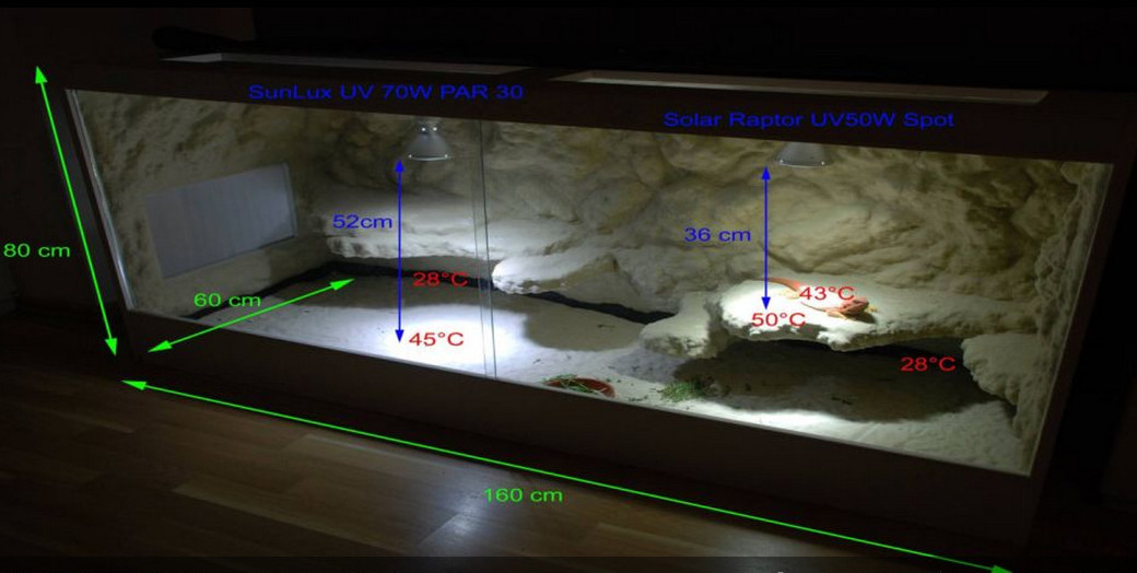 moc prosím o rady týkající se osvětlení. Mám terárium 120x50x50 s předním otevíráním po celé délce a s větrací mřížkou ve předu pod skly a na horní desce (obojí je průduch 60x10cm). Terárko je v obýváku, tedy pravidelně zhruba 22 stupňů v zimě až 27 stupňů v létě.
