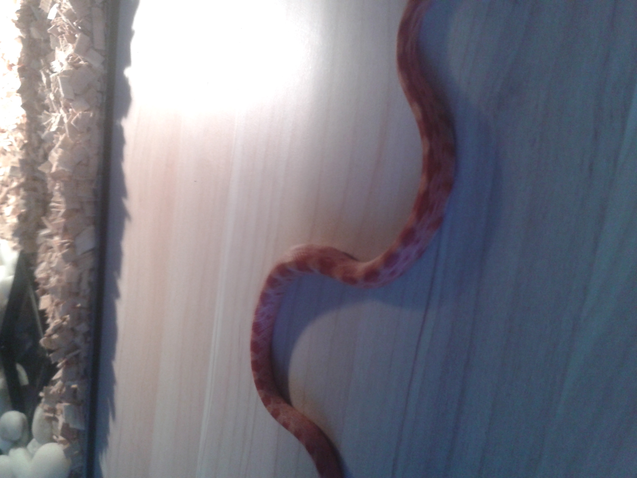 Bohužel tohle není o tom, jestli se chce fotit had, ale o kvalitě fotografie, čímž míním ostrost, barvy atd. Ani z druhé fotky není poznat nic a netroufám si říct nic jiného, než že je to prostě zvíře s amelano genem.