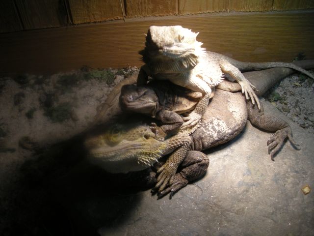 Souziti s vousatkami leta praktikoval zcela bez problemu Fajfmen.Ty moje jsou zatim v karantene a jsou to mimina ,takze zadne zkusenosti nemam.